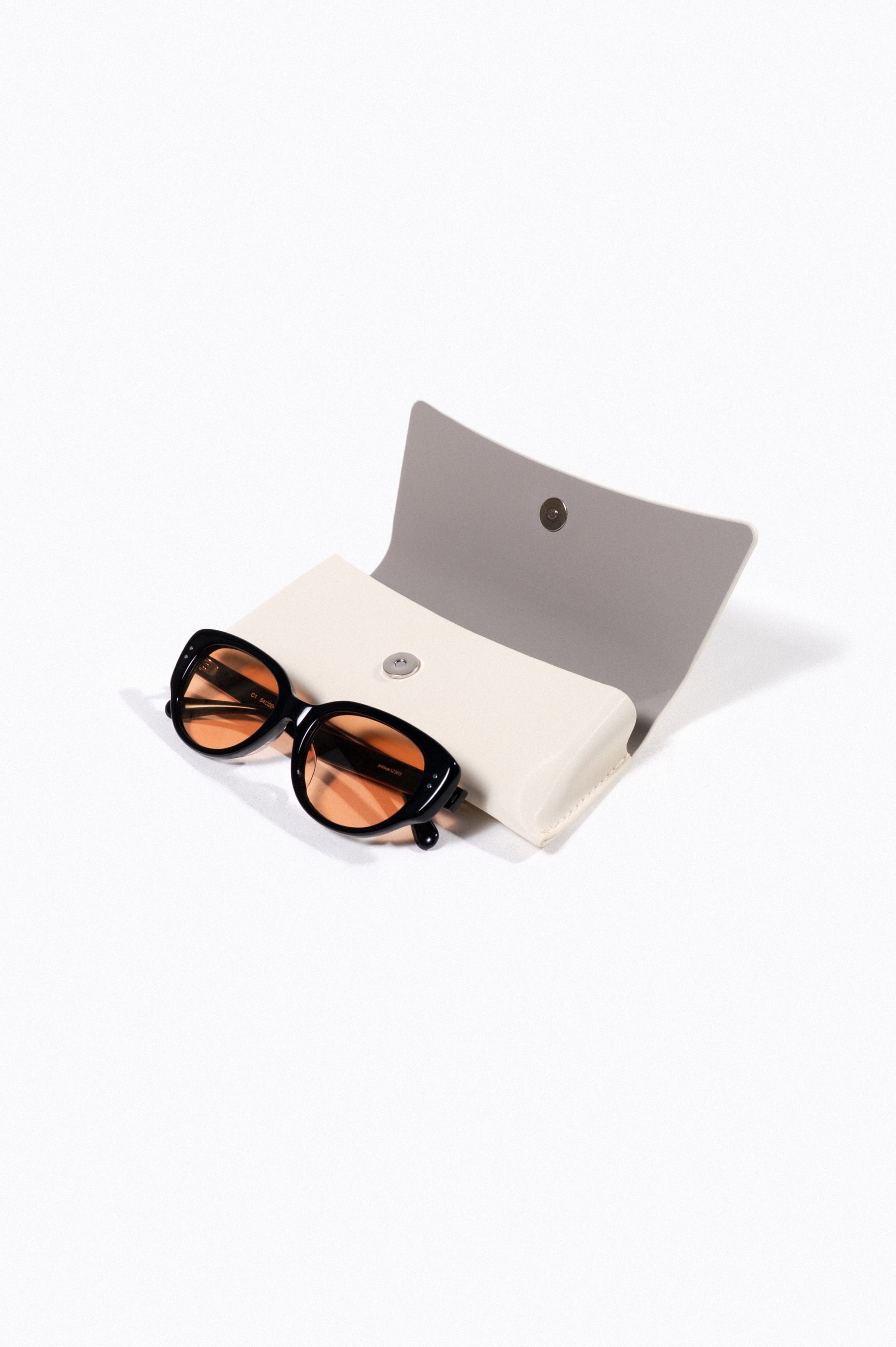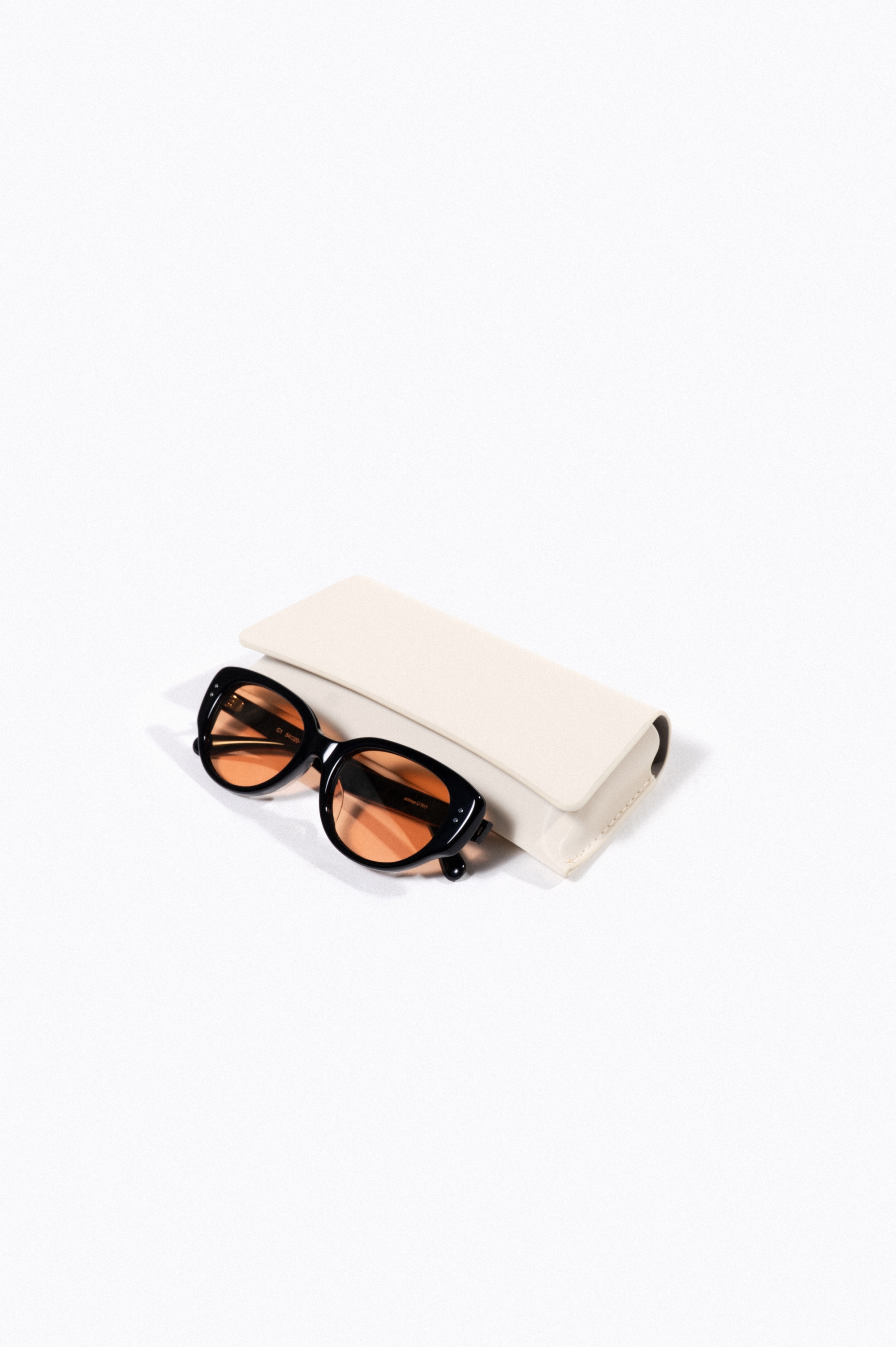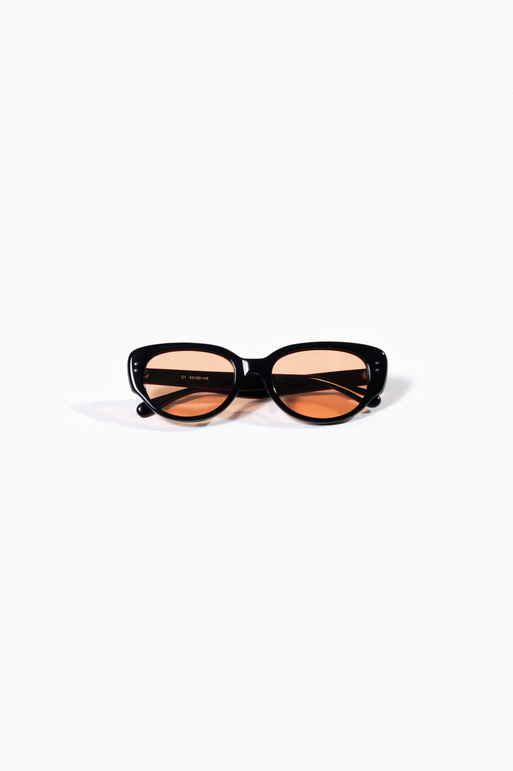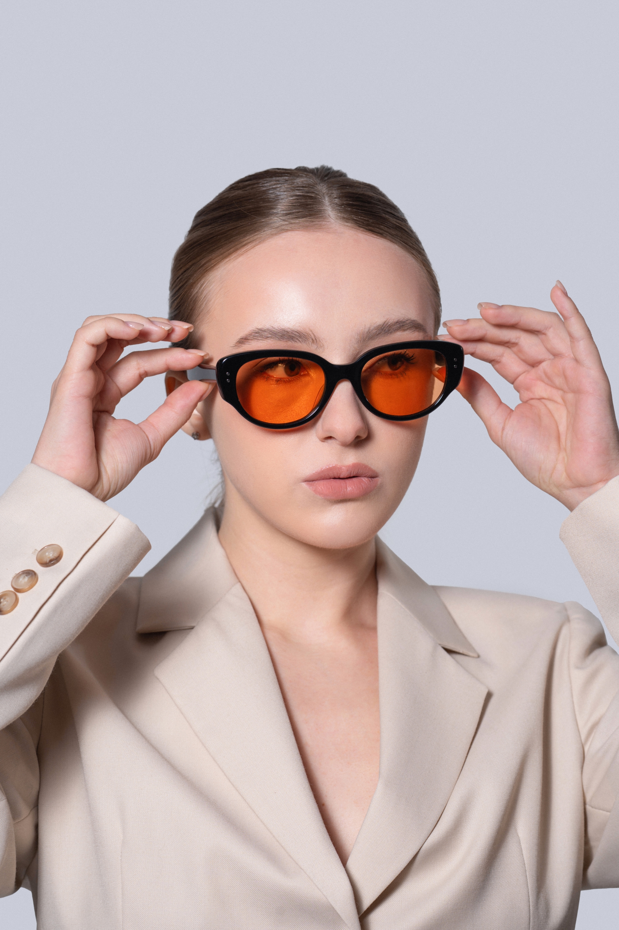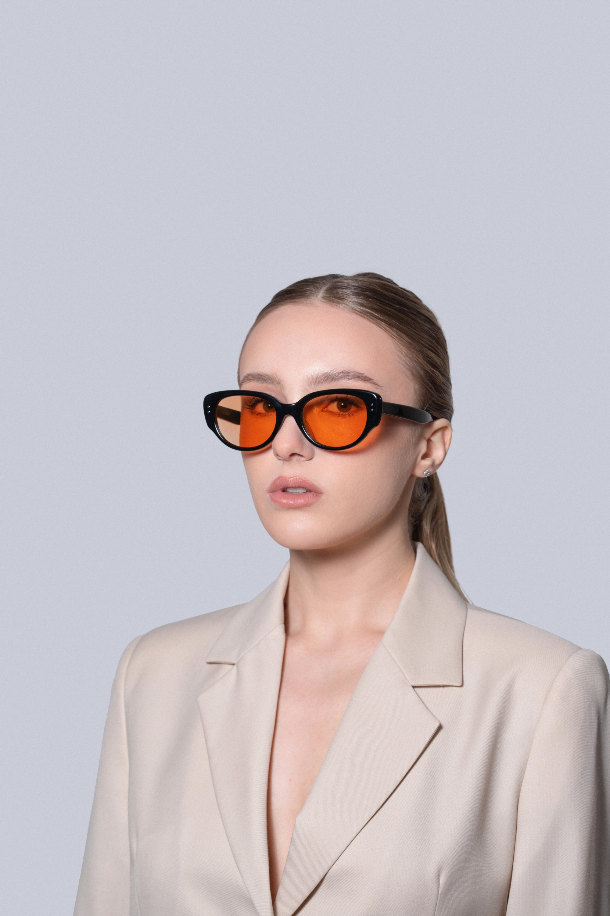 Стильные очки с черной оправой и оранжевыми стеклами. Идеальный выбор для этого лета.