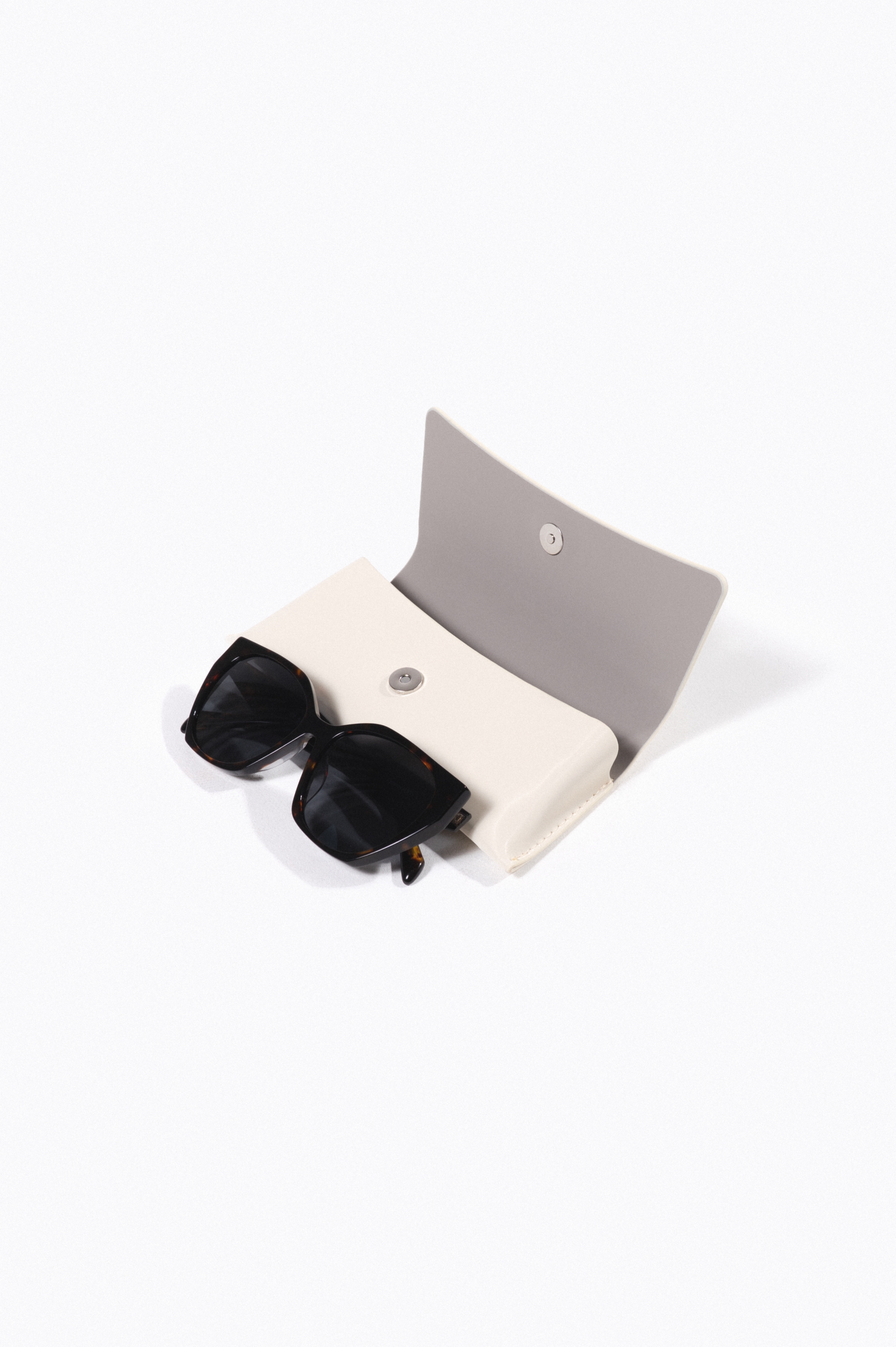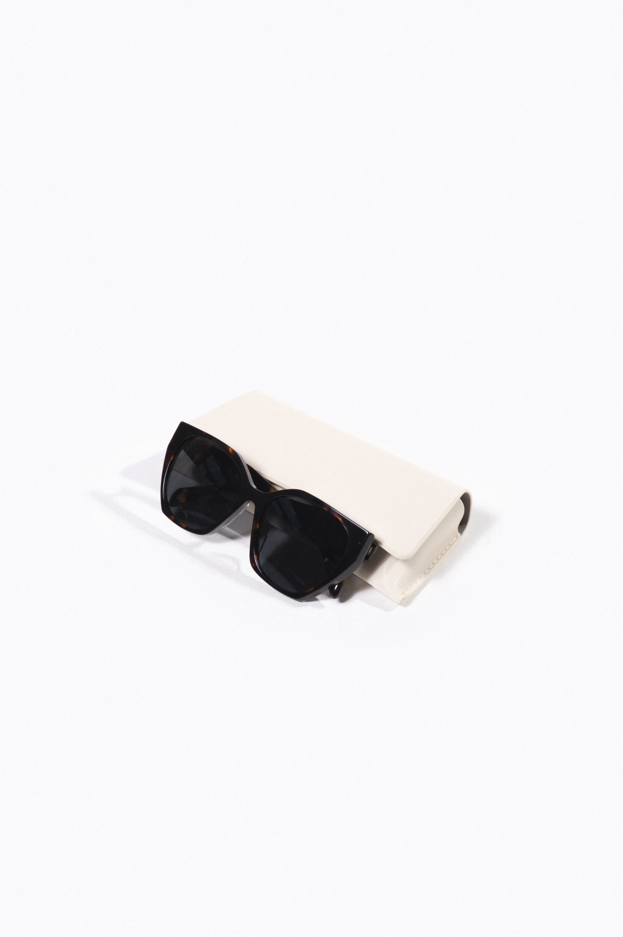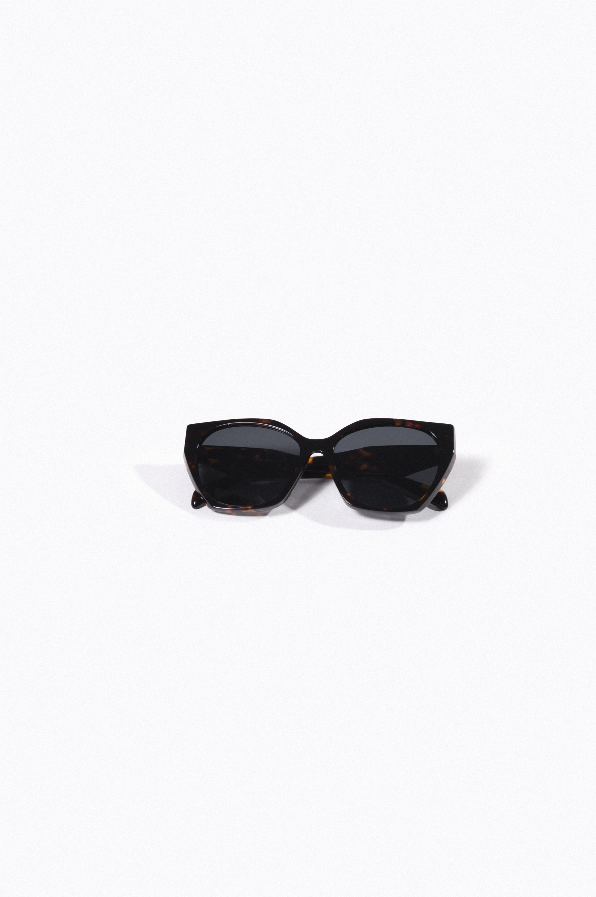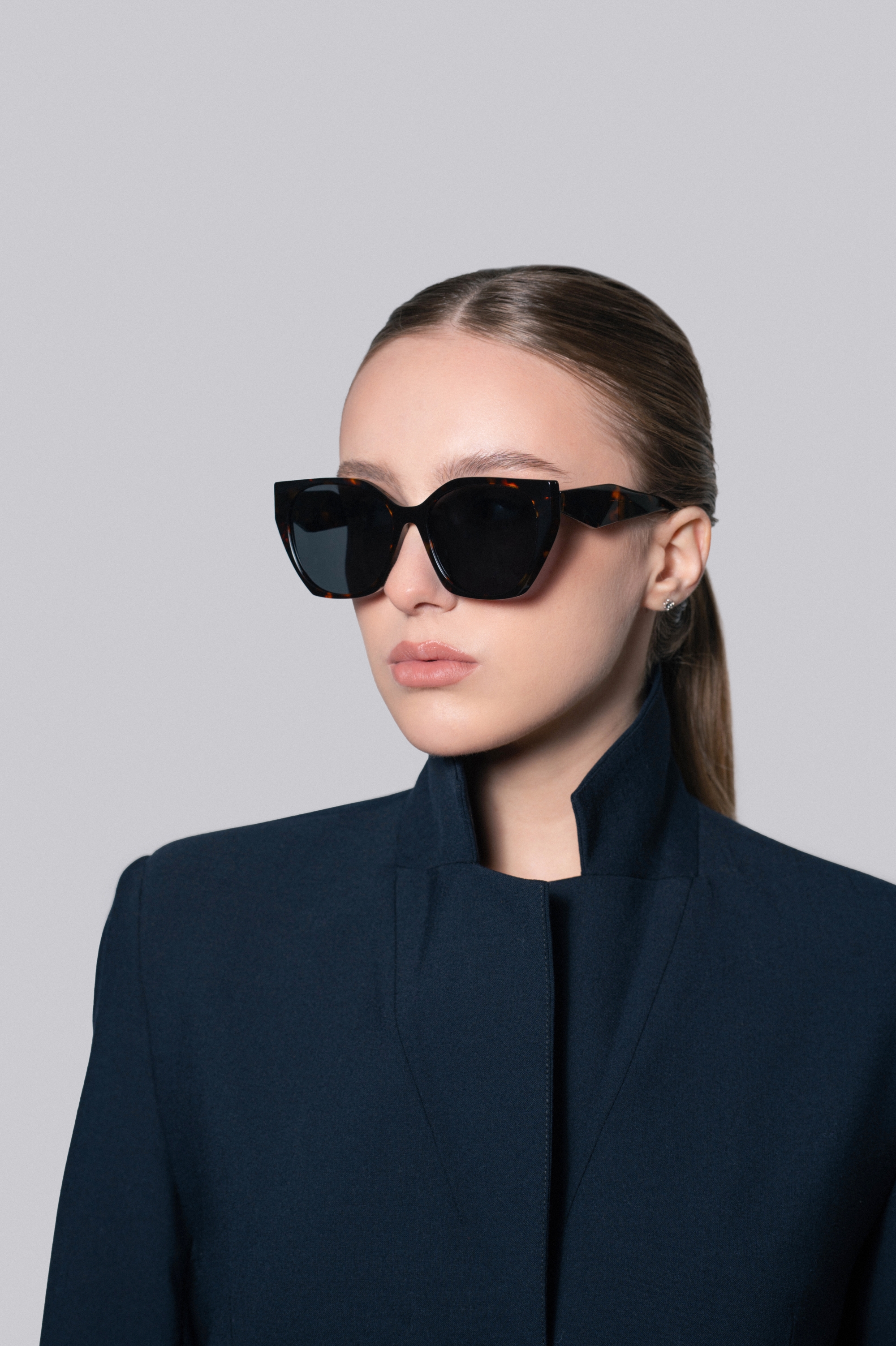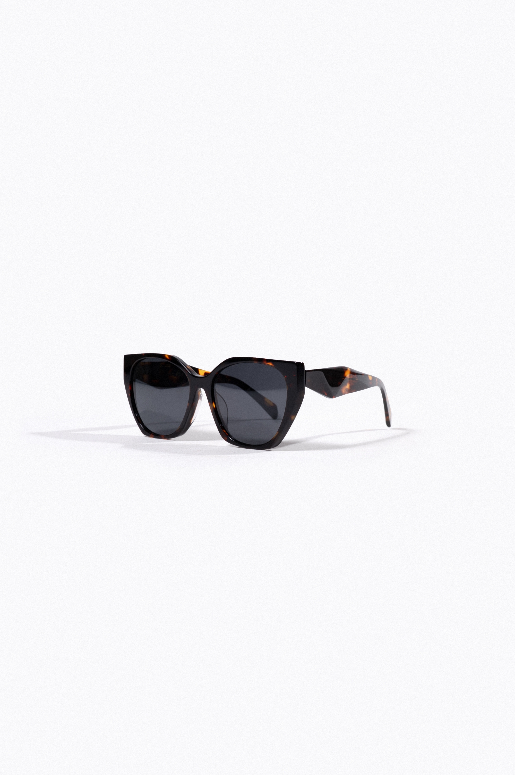 Крупные очки необычной формы, леопардовая оправая оправа и черные стекла. Идеальный выбор для этого лета.