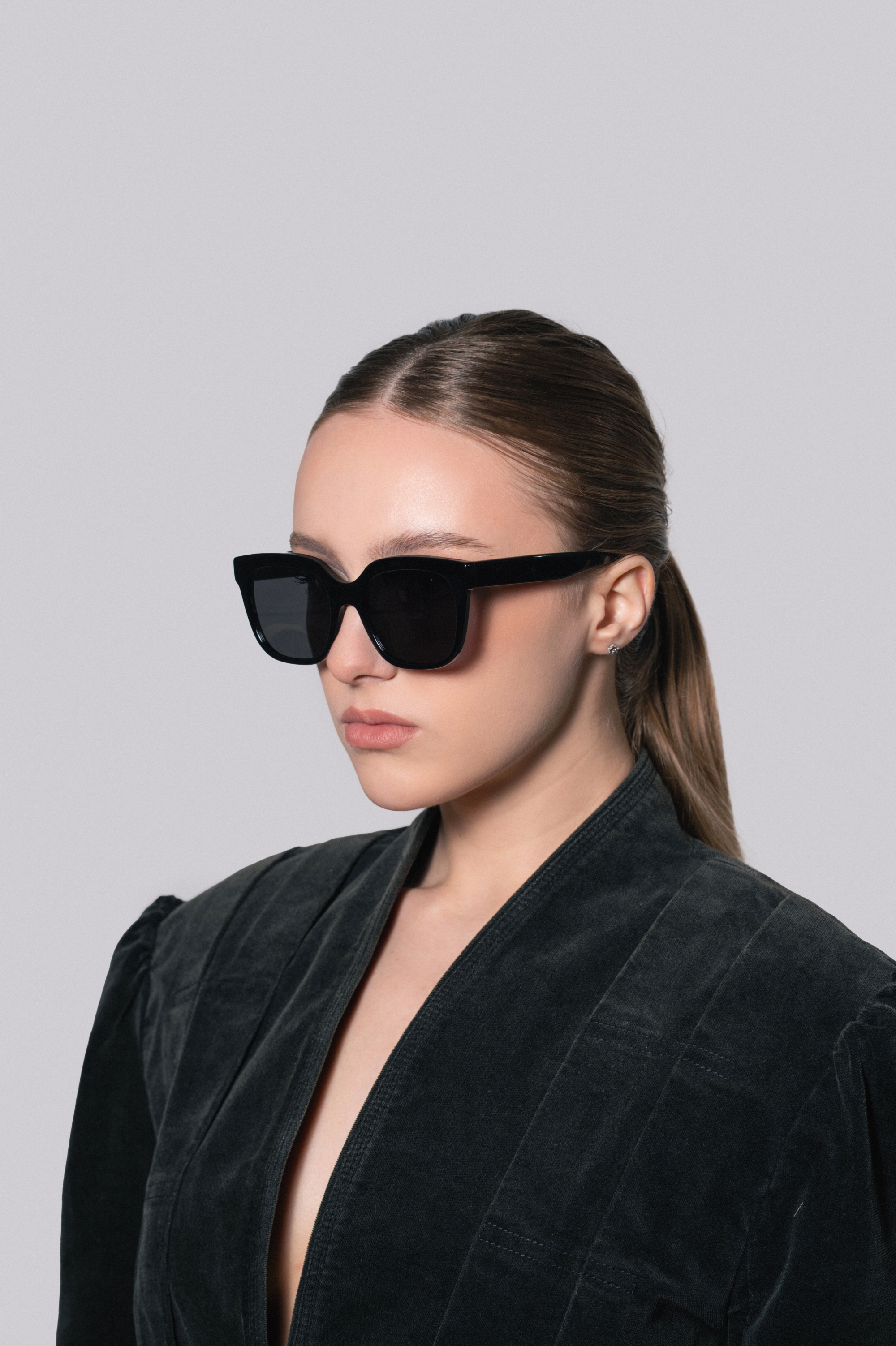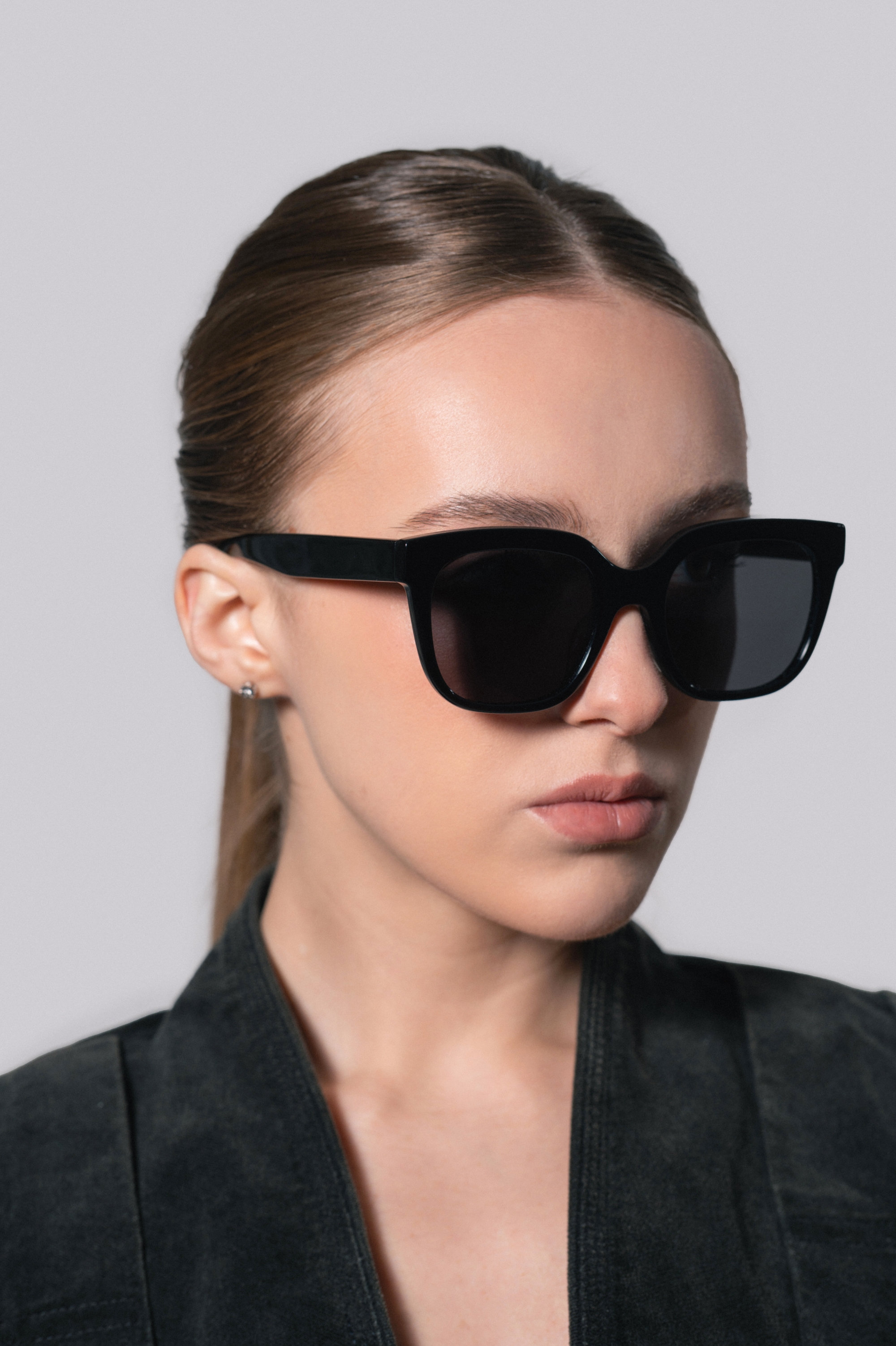 Крупные очки с черной оправой и черными стеклами. Идеальный выбор для этого лета.