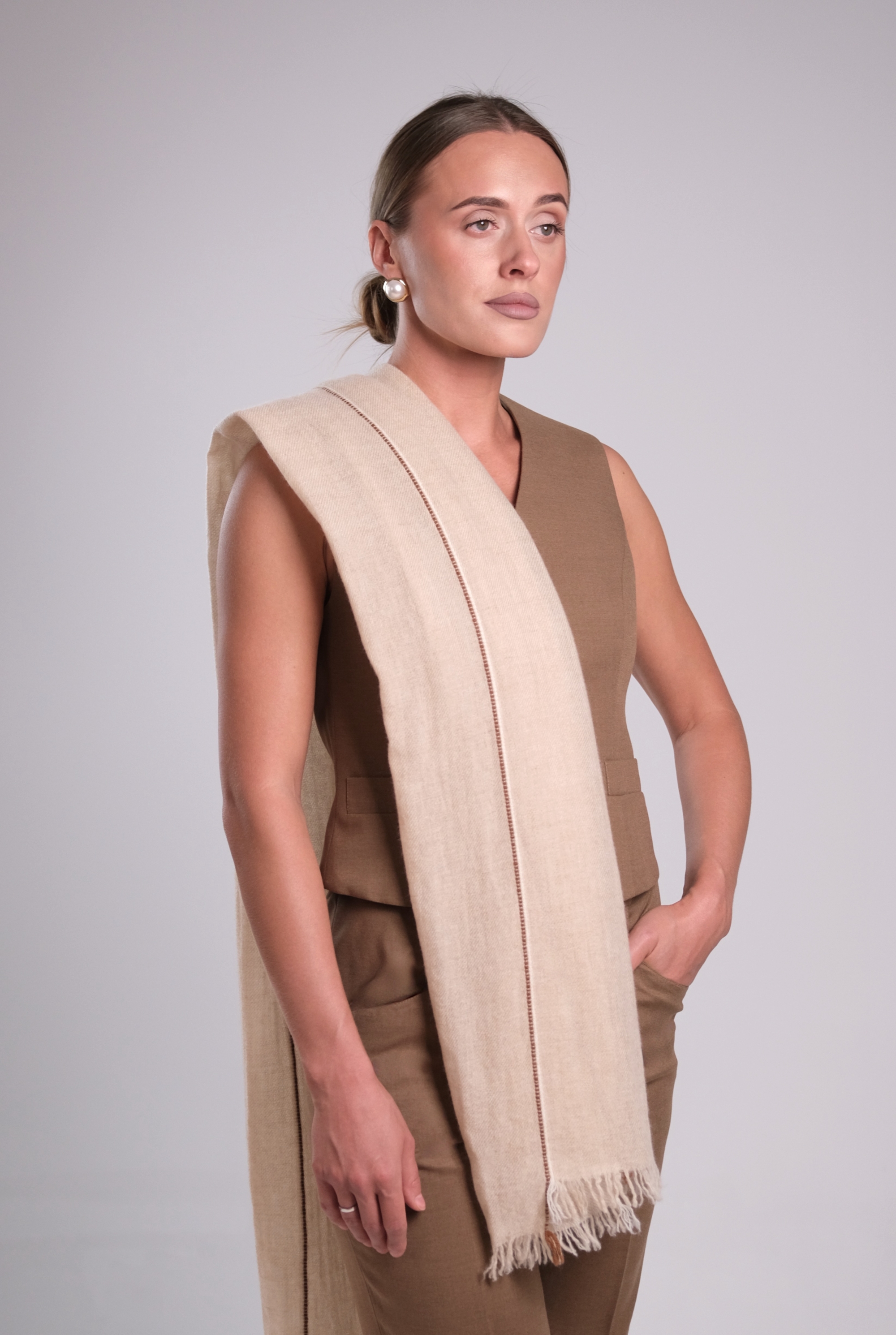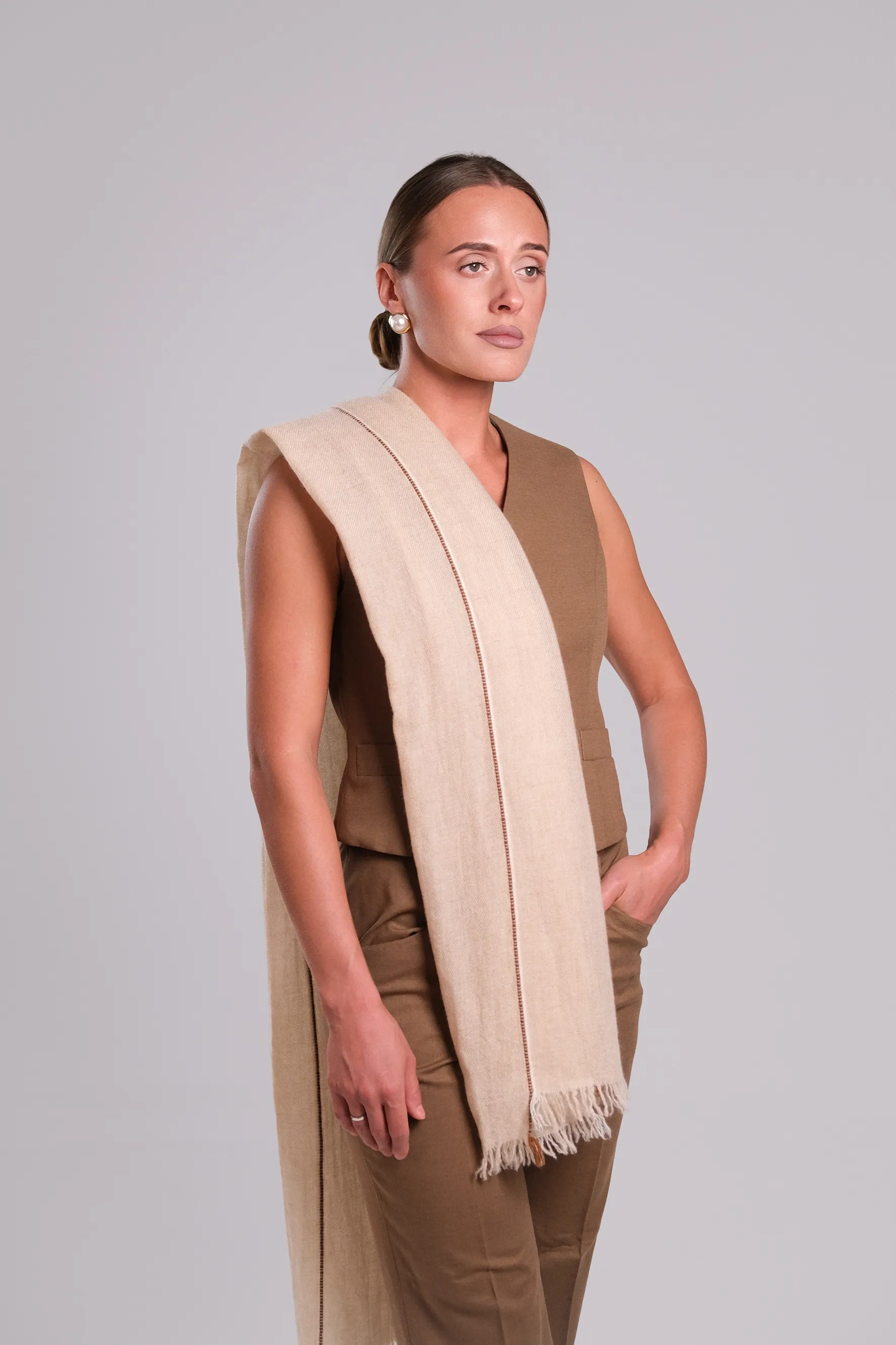 Мягкий, согревающий, уютный. Бежевый шарф из 100% кашемира не только согреет в любую погоду, но и предаст необходимый акцент любому образу.