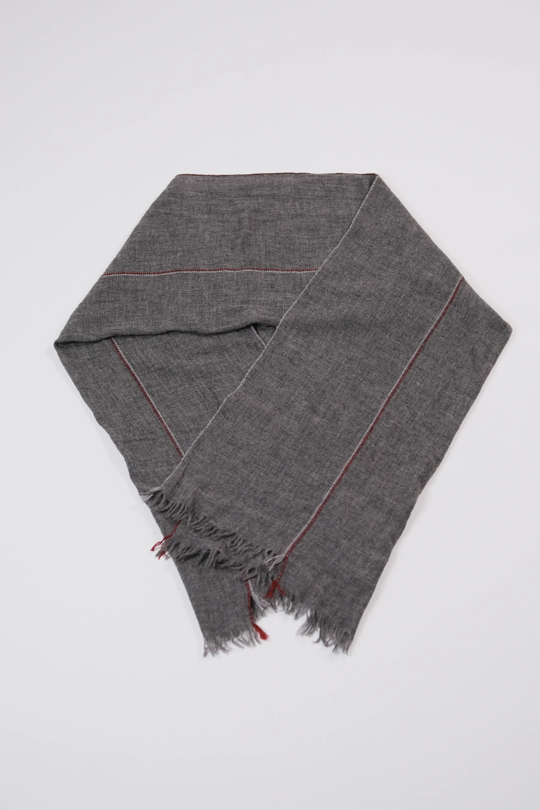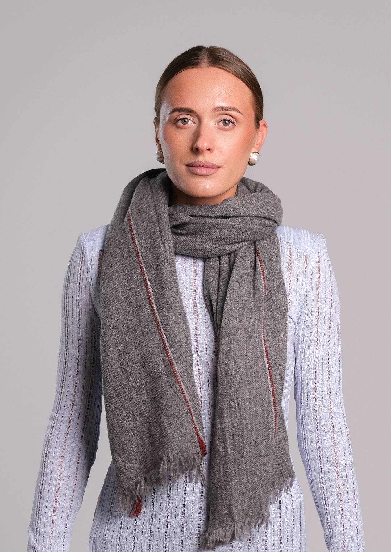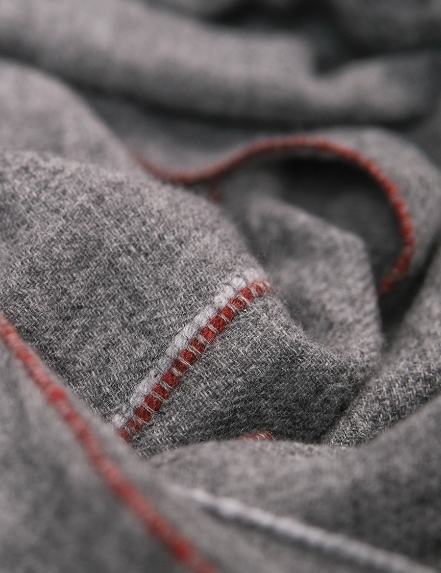 Шарф "Красная полоска "серый