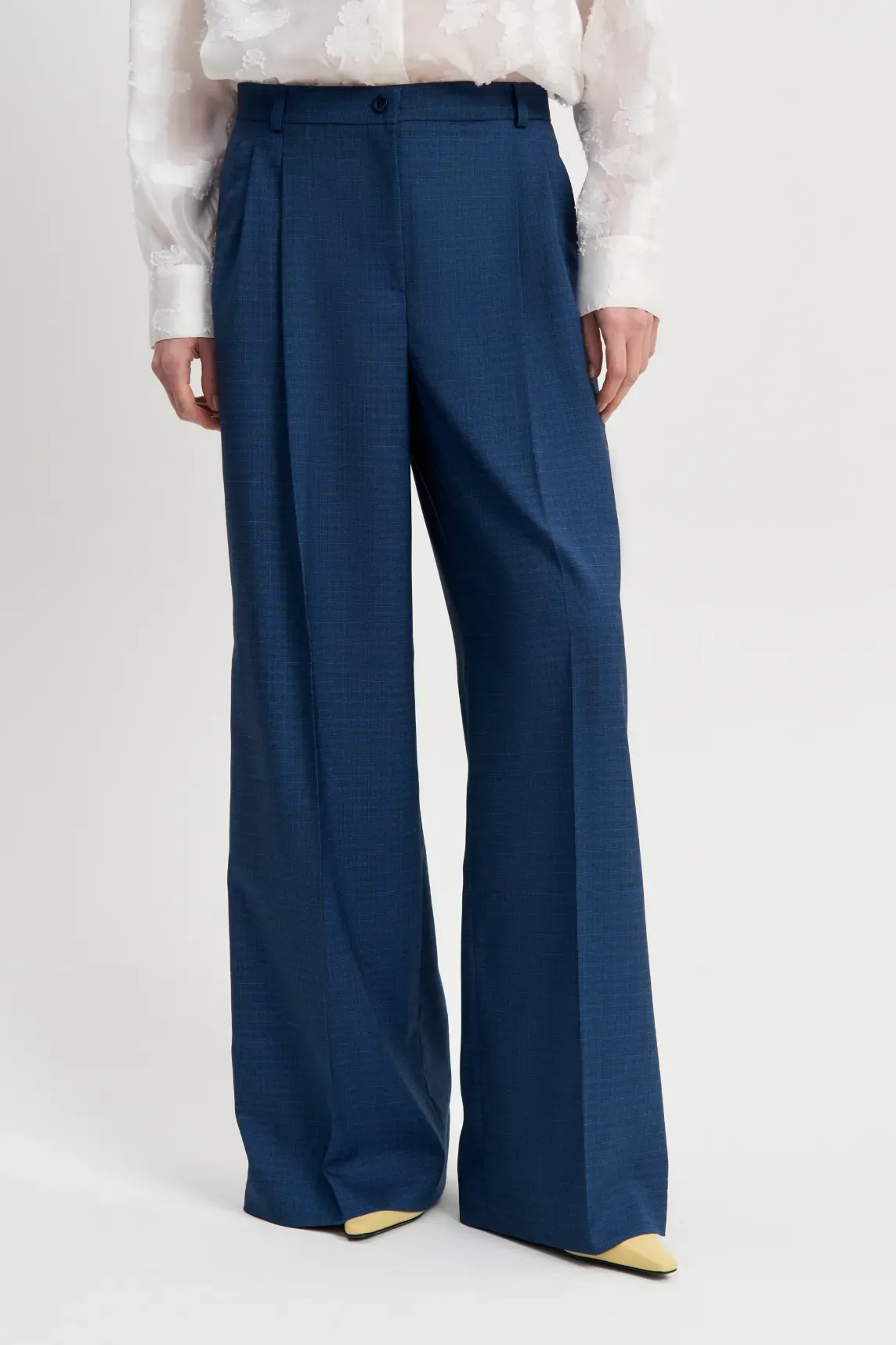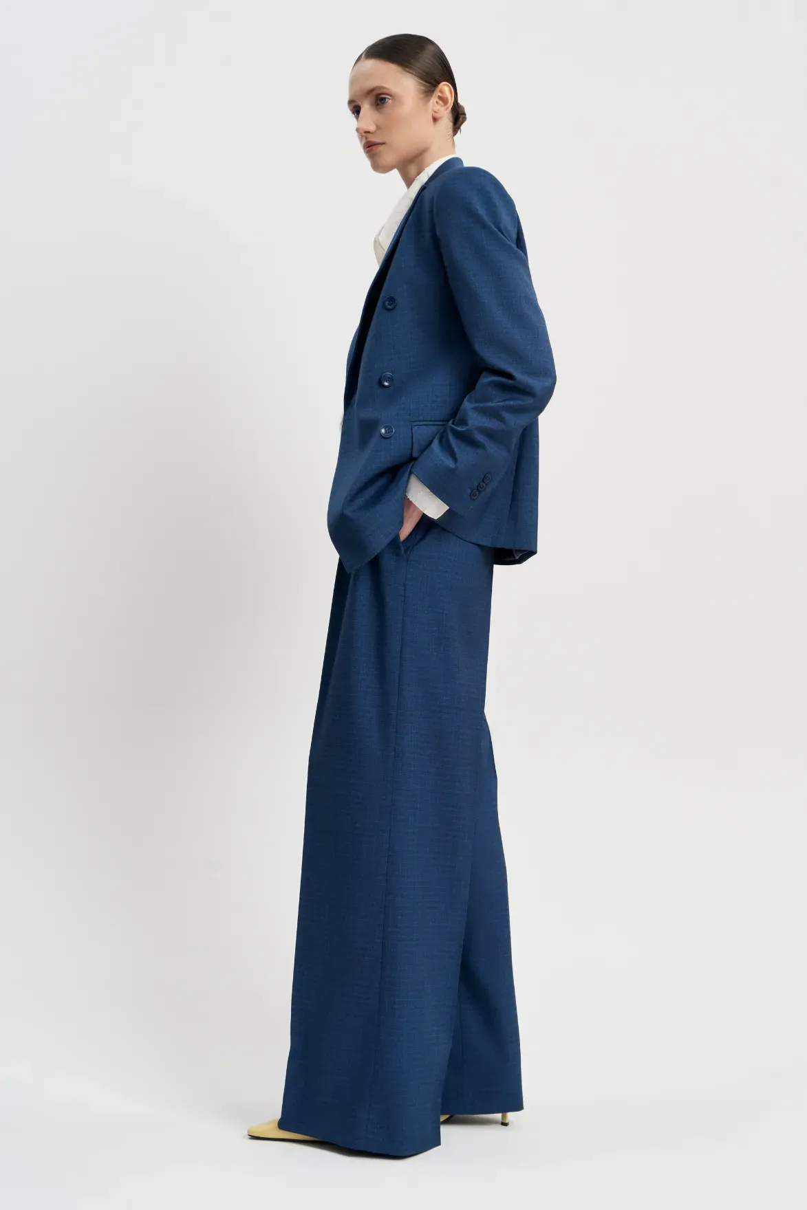 Широкие брюки Карьера прекрасно посажены на талию и очень комфортны в носке. Вместе с жакетом Карьера составляют стильный Английский костюм темно синего цвета.