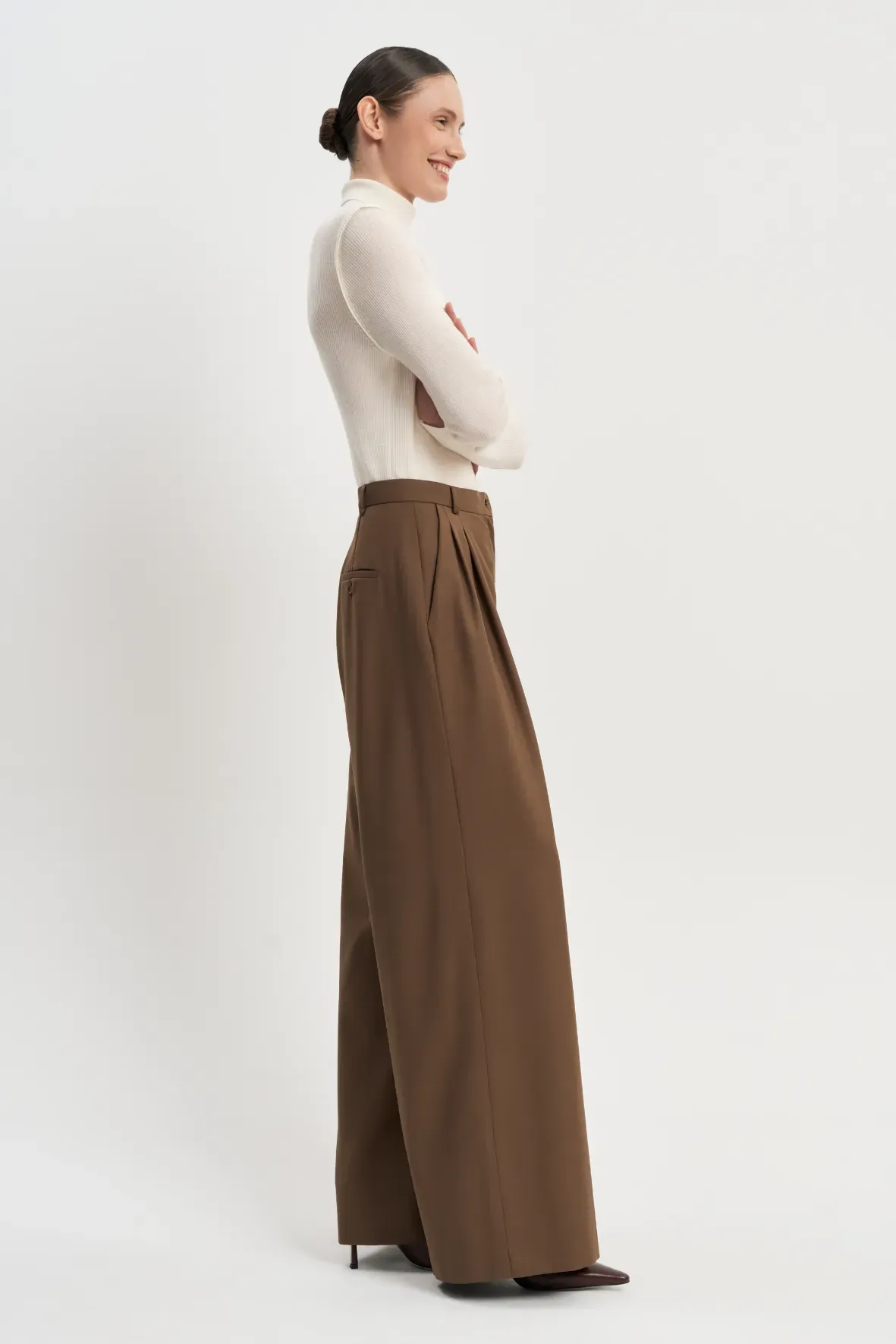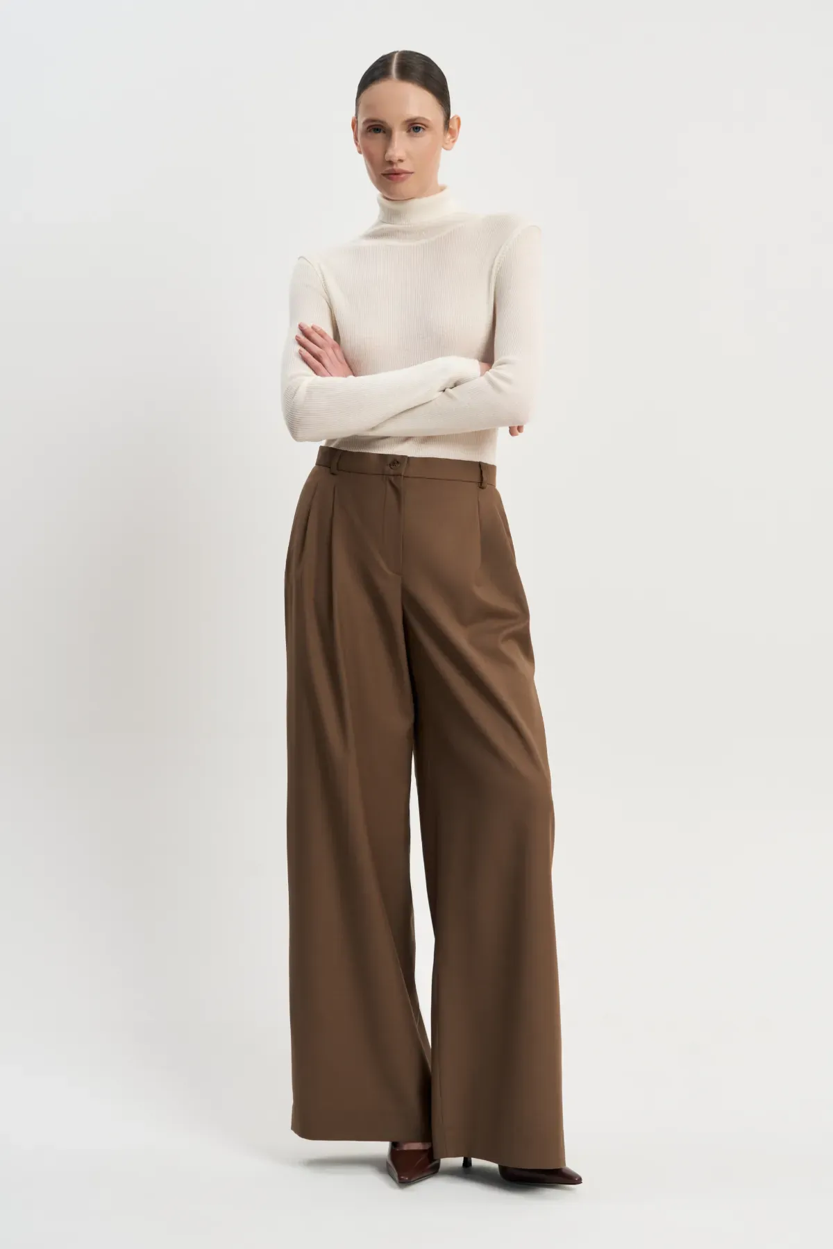 Широкие струящиеся брюки Макси/Макси идеально посажены на талию и вместе с необычным пиджаком Макси/Макси создают роскошный городской образ.