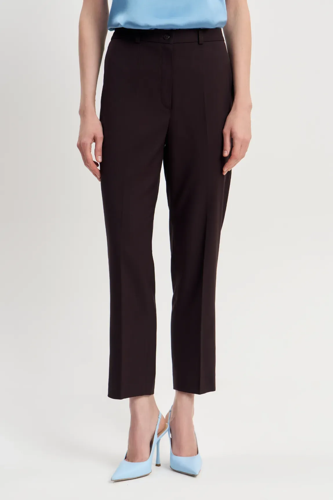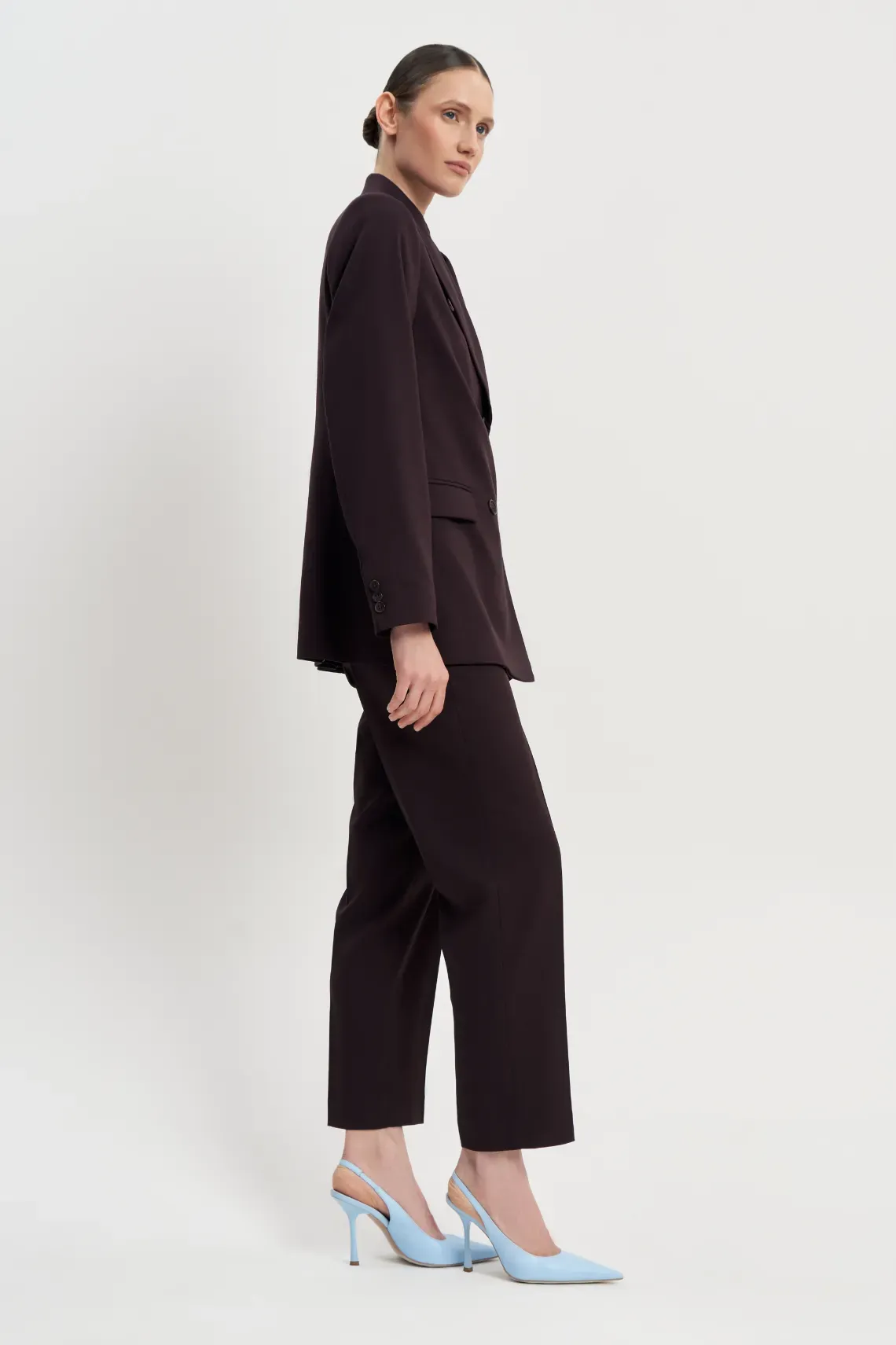 Стильные зауженные к низу брюки Шоколад вместе с необычным жакетом Шоколад глубокого шоколадного цвета создают элегантный городской образ.