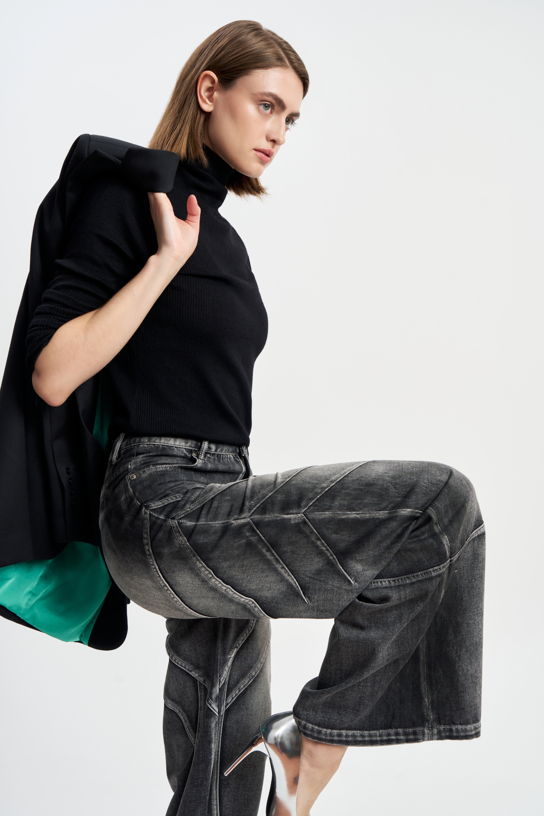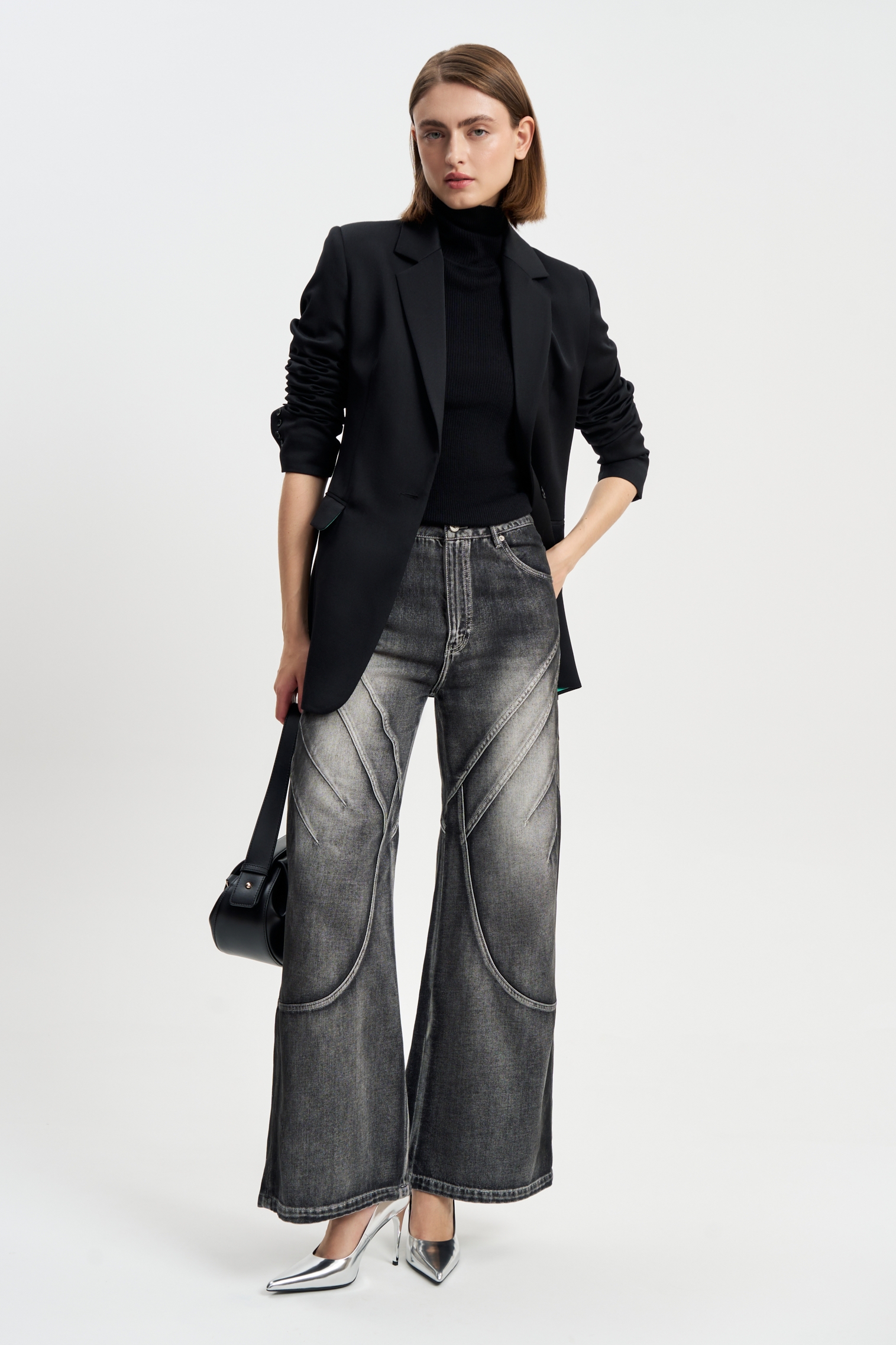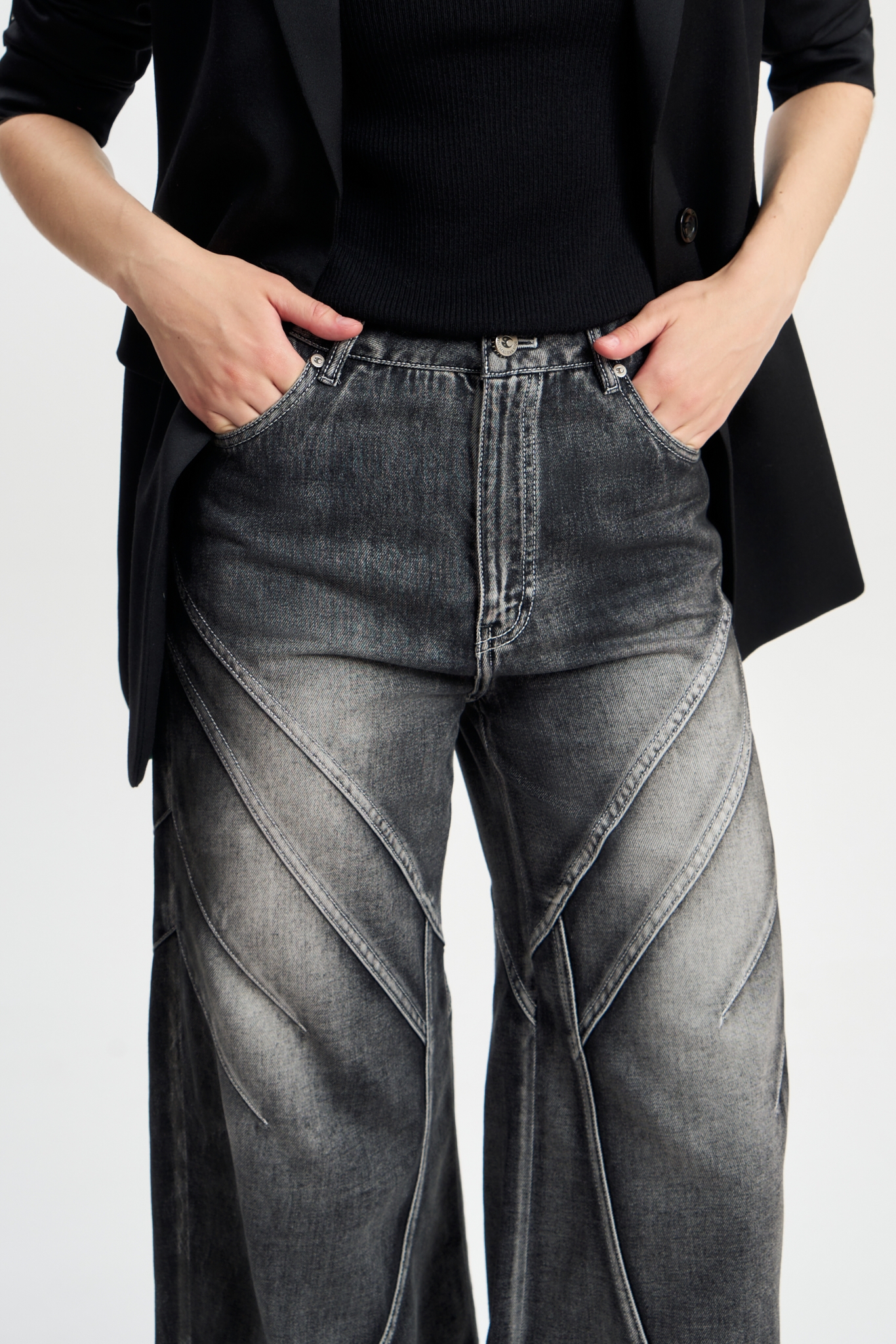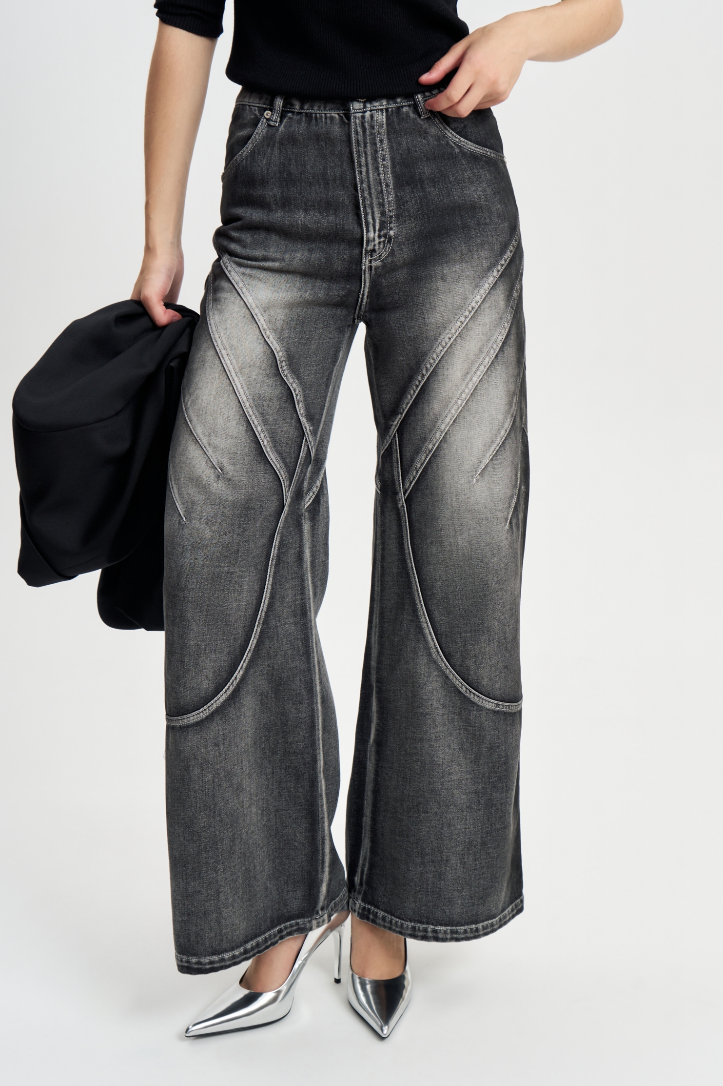 Джинсы Драйв — это воплощение дерзкого дизайна и комфорта. Модель выполнена из качественного денима с высоким содержанием хлопка, что обеспечивает мягкость и долговечность. Глубокий черно-серый оттенок подчеркивает благородство материала, а необычный декор придаёт образу архитектурную чёткость и современный характер. Идеальны как с классическими рубашками, так и с вечерними топами. На фото представлены в сочетании с топом "Млечный путь"