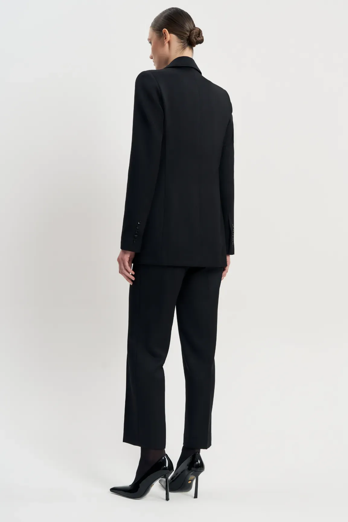 Элегантный костюм, состоящий из жакета и брюк — идеальный баланс классики и смелых акцентов. Классический крой подчеркивает элегантность, а яркая подкладка добавляет образу дерзости и уникальности.