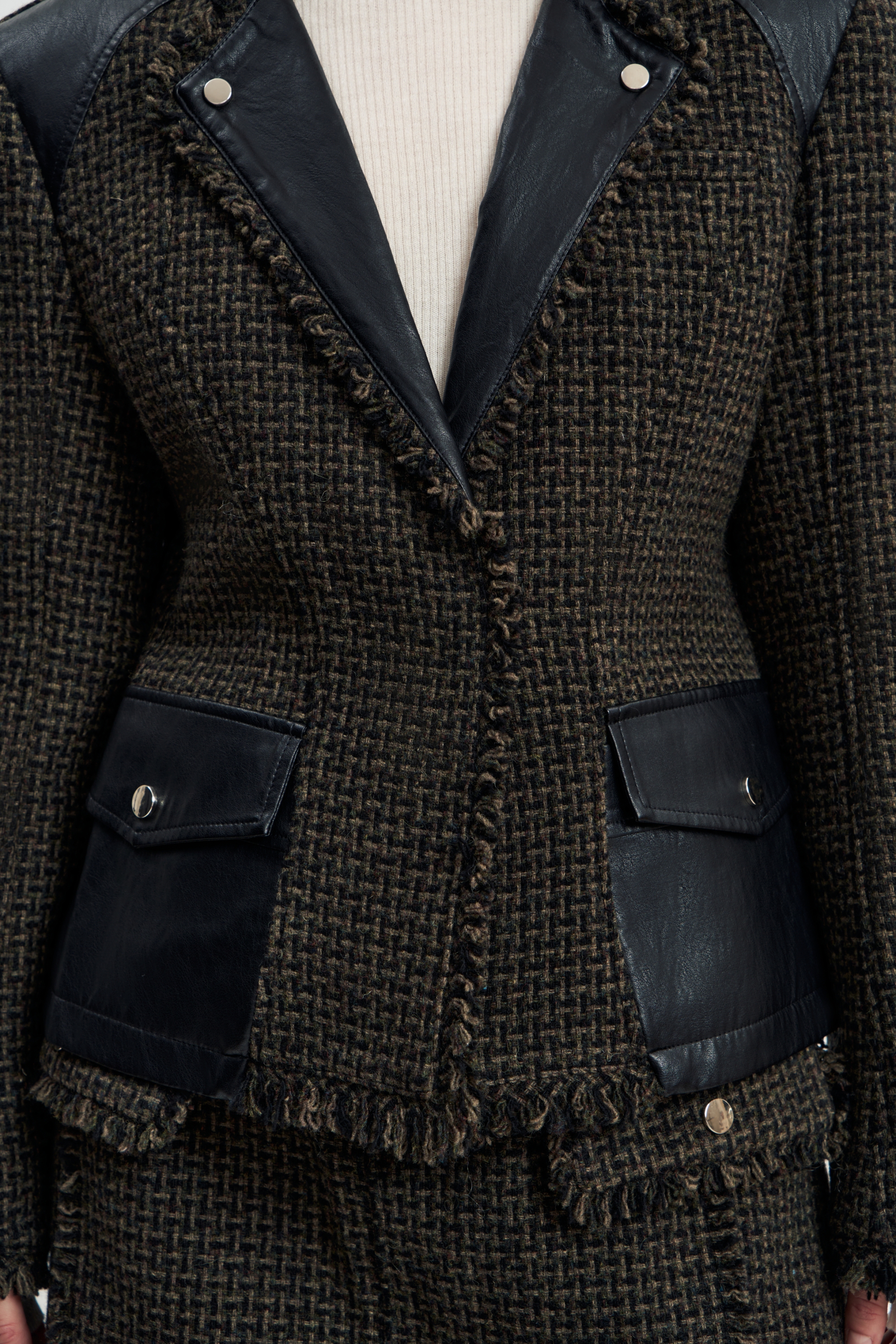 Фактурная бахрома — отсылка к твидовой традиции, но подана дерзко, с современным настроением. Архитектура этой модели построена на контрасте форм и настроений.