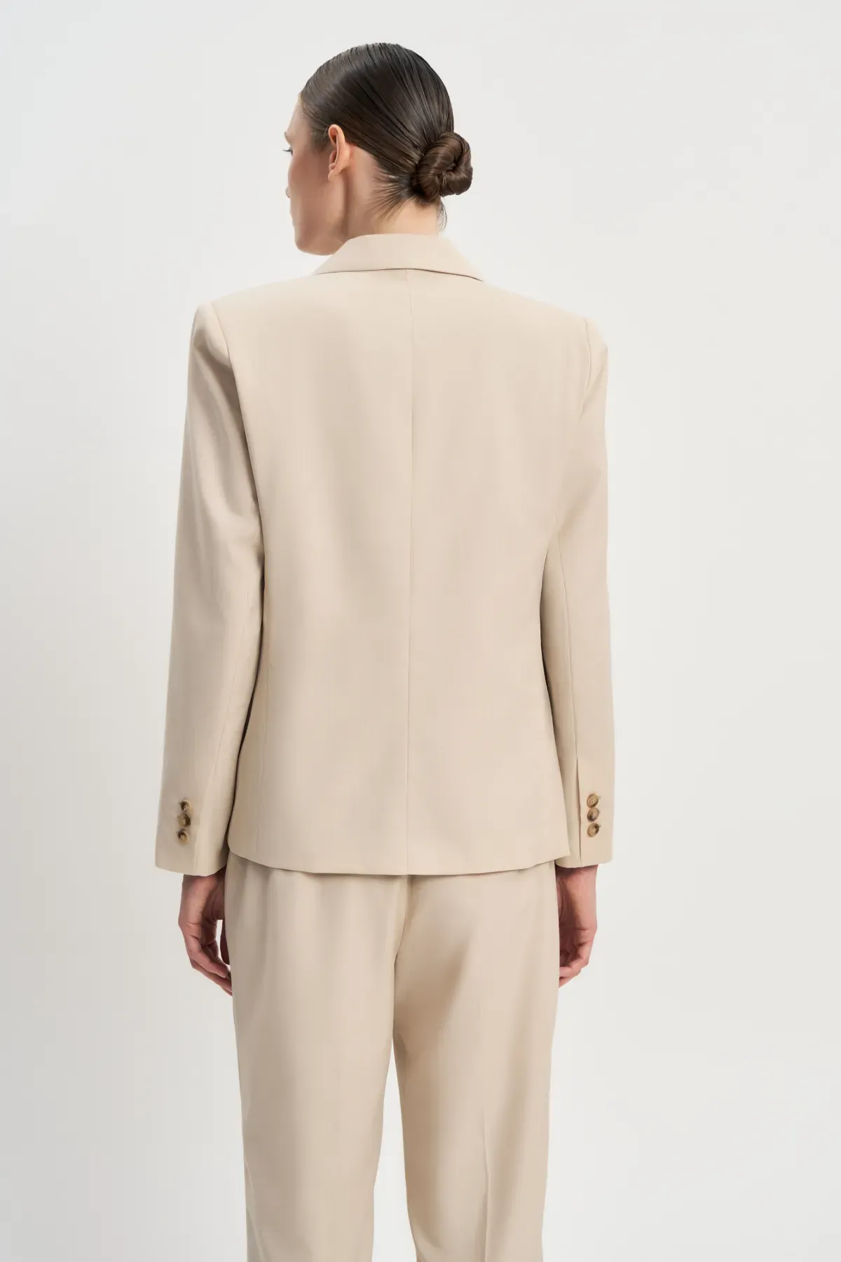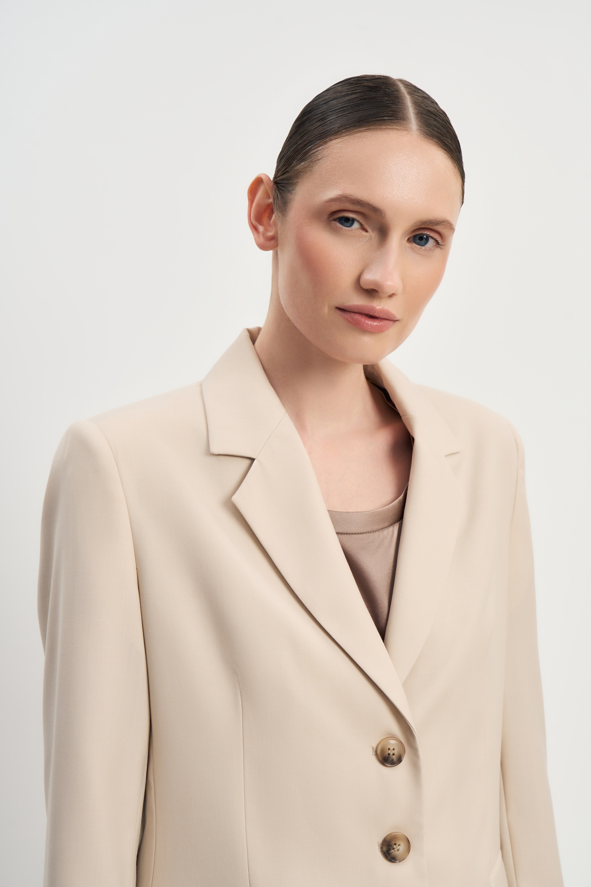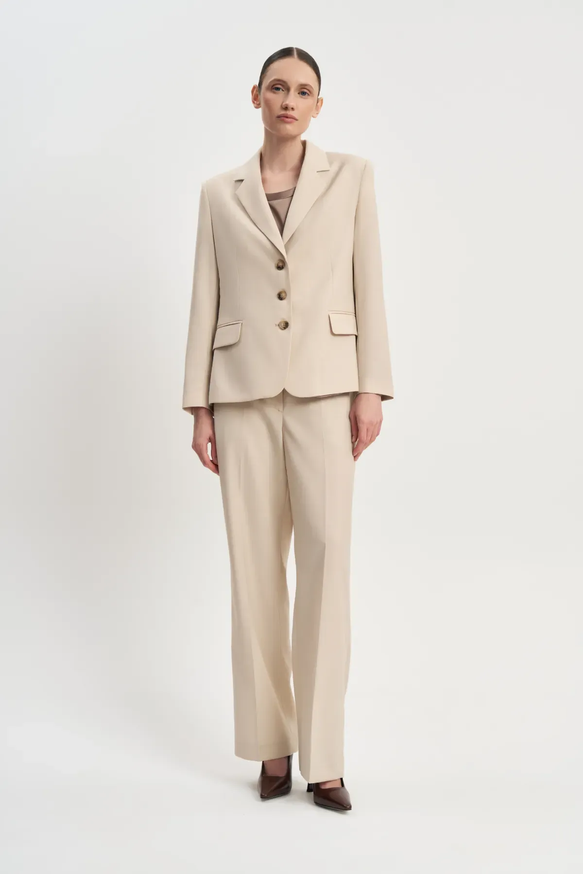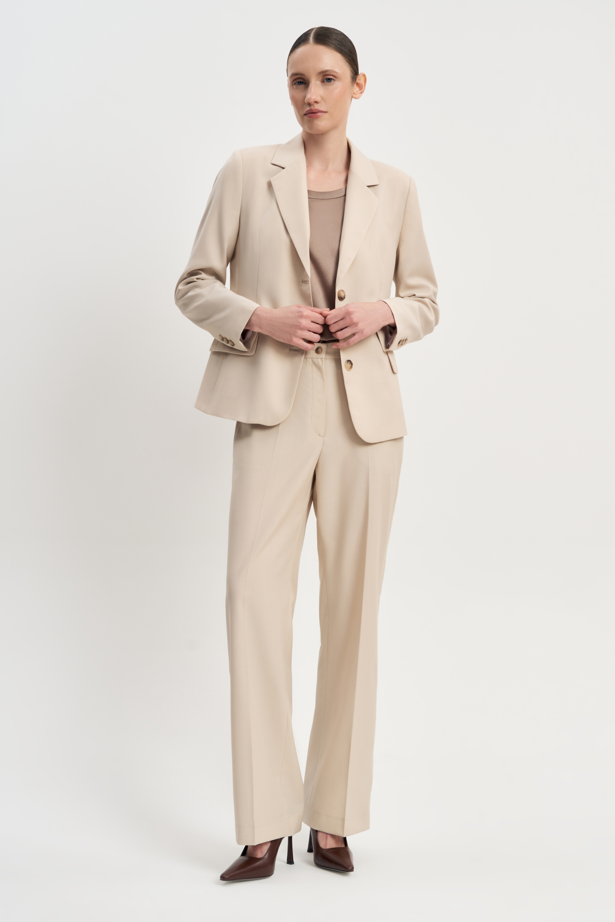 Костюм Топленое молоко интенсивного молочного цвета состоит из узких брюк и изящного однобортного пиджака. Нежный весенний и летний look, подходящий и для офиса, и для романтической прогулки, и для дневных встреч.