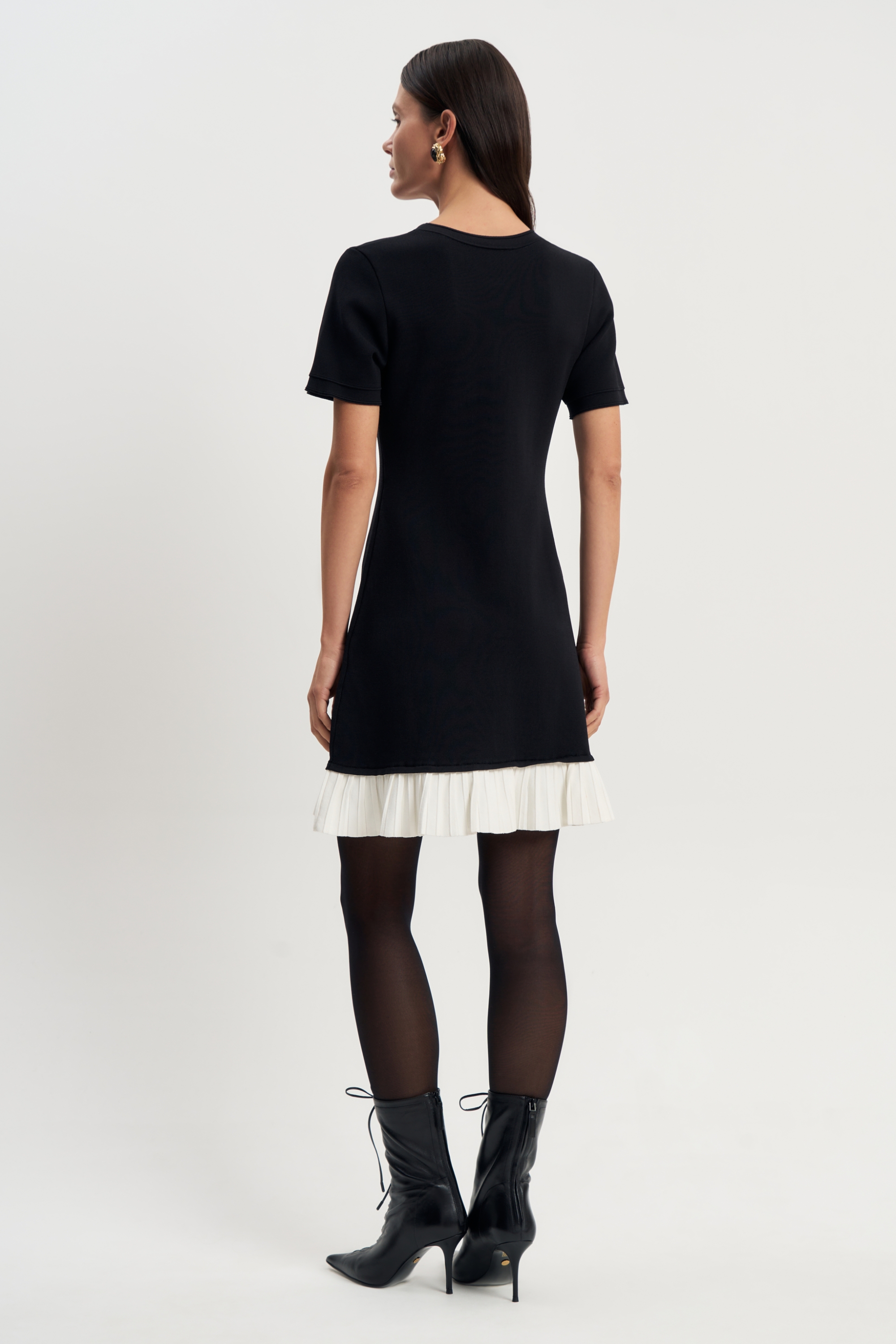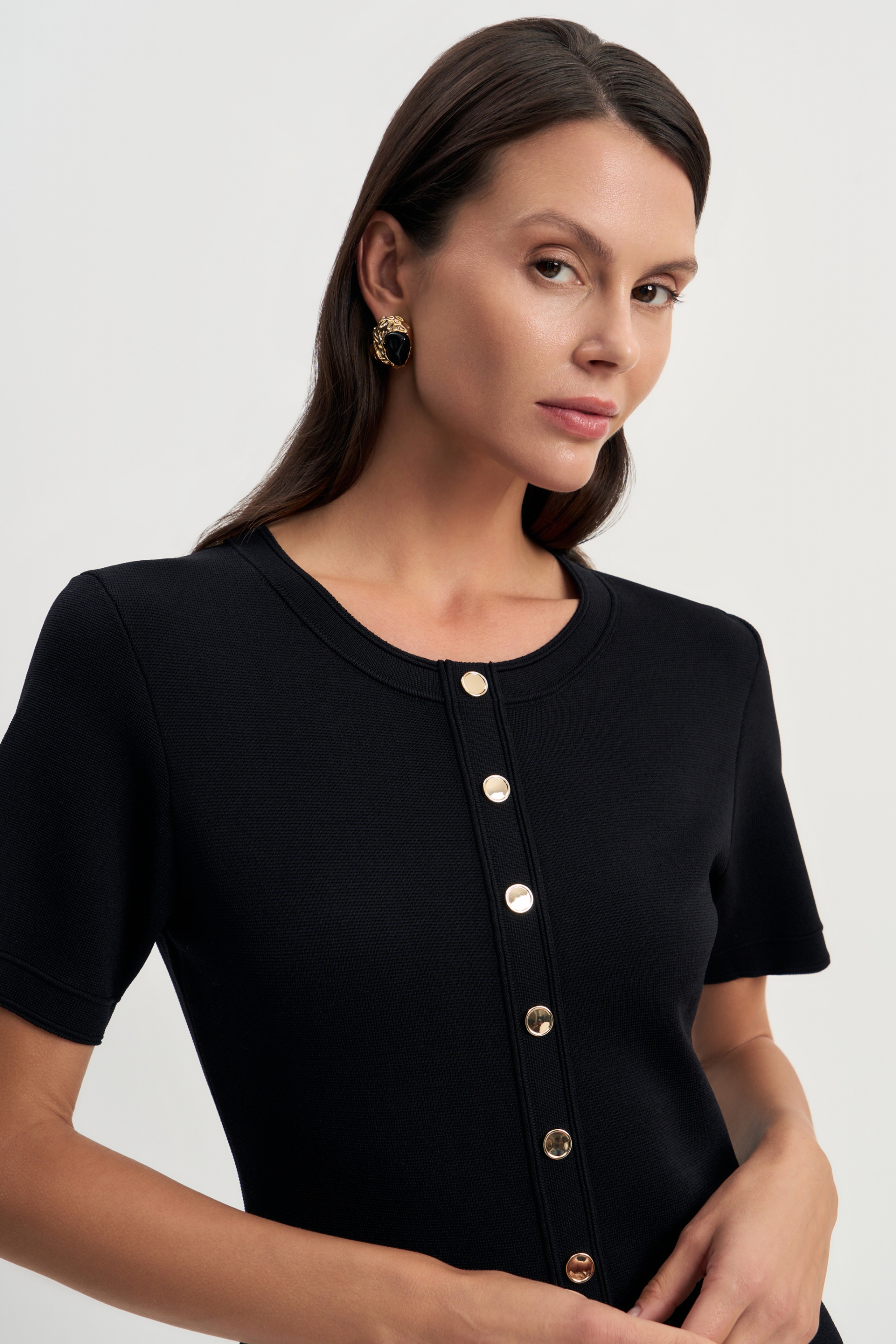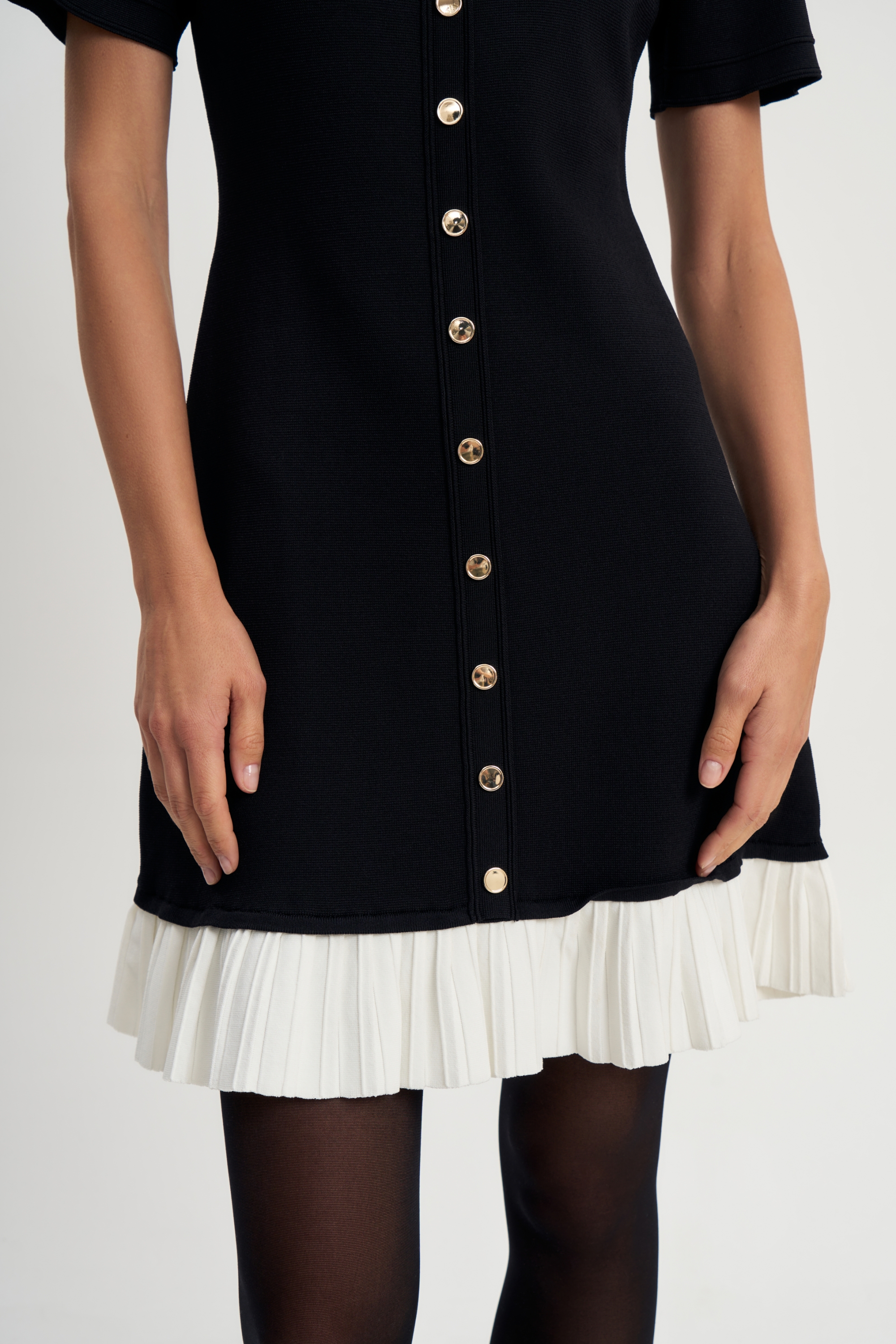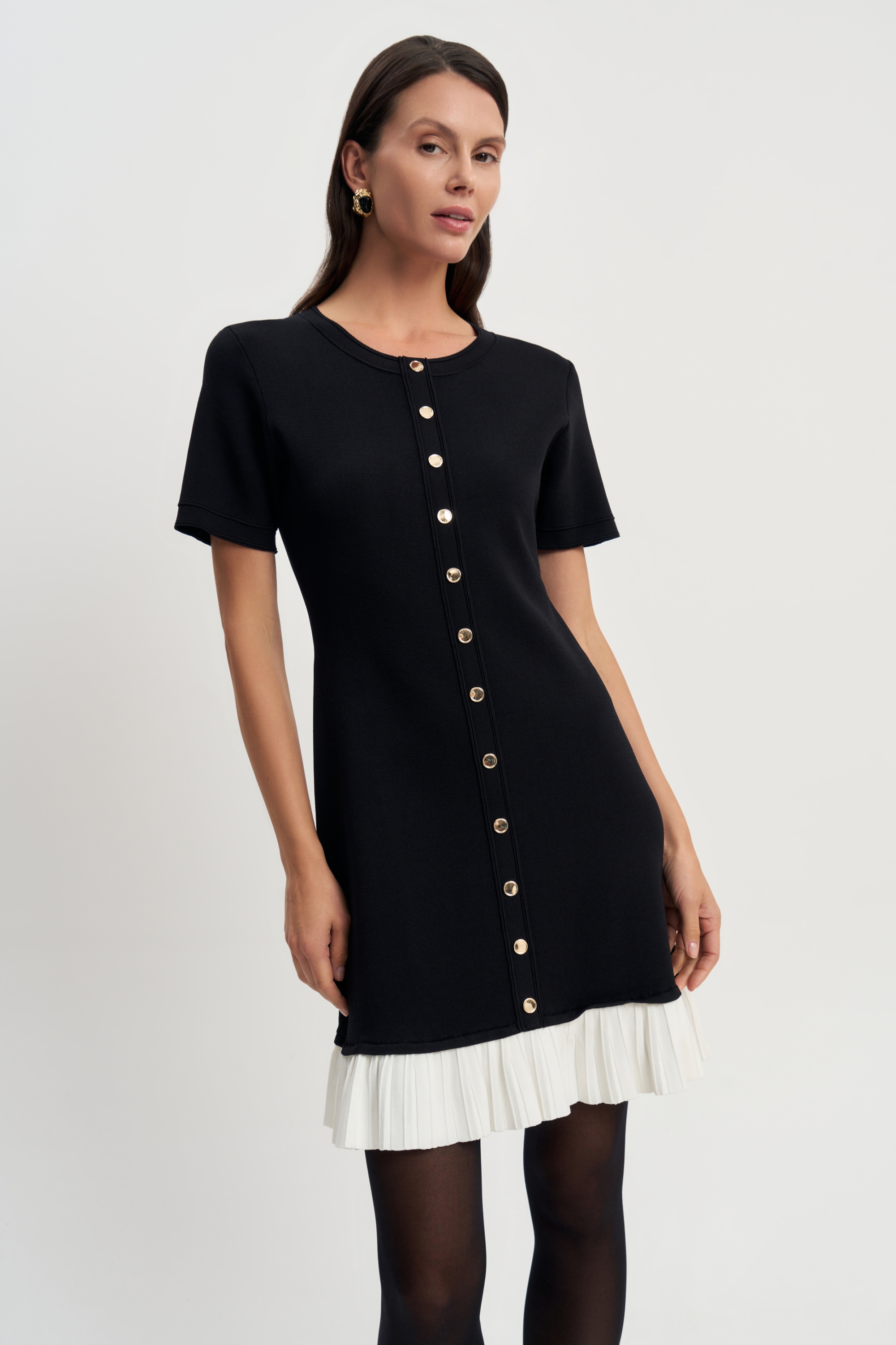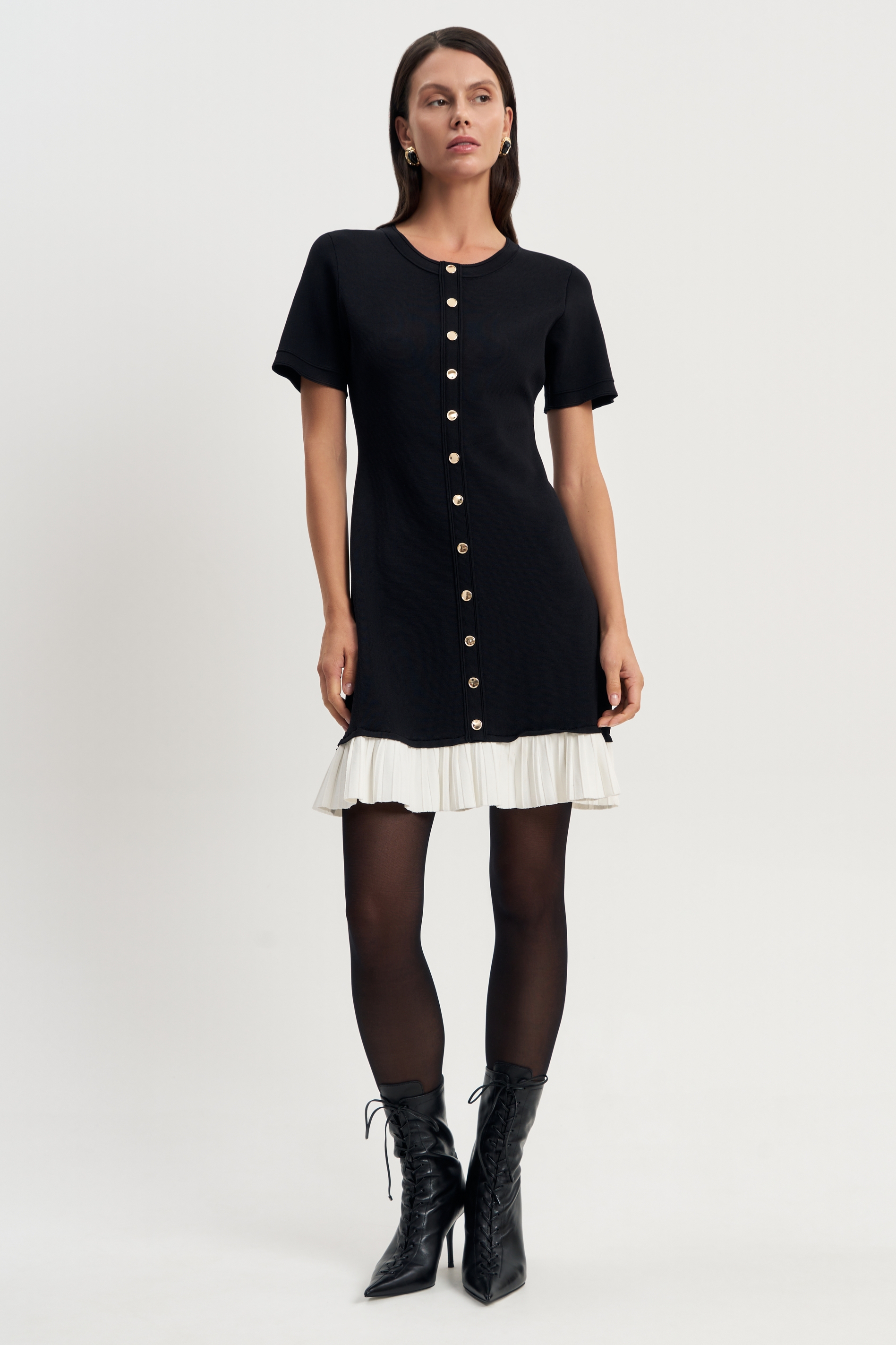 Утонченное и классическое платье Одри отсылает нас к иконам стиля конца ХХ века. Прямой крой, строгая линия пуговиц и игривая плотная оборка на подоле создают законченный элегантный образ, подходящий как для повседневных выходов так и для светских мероприятий.