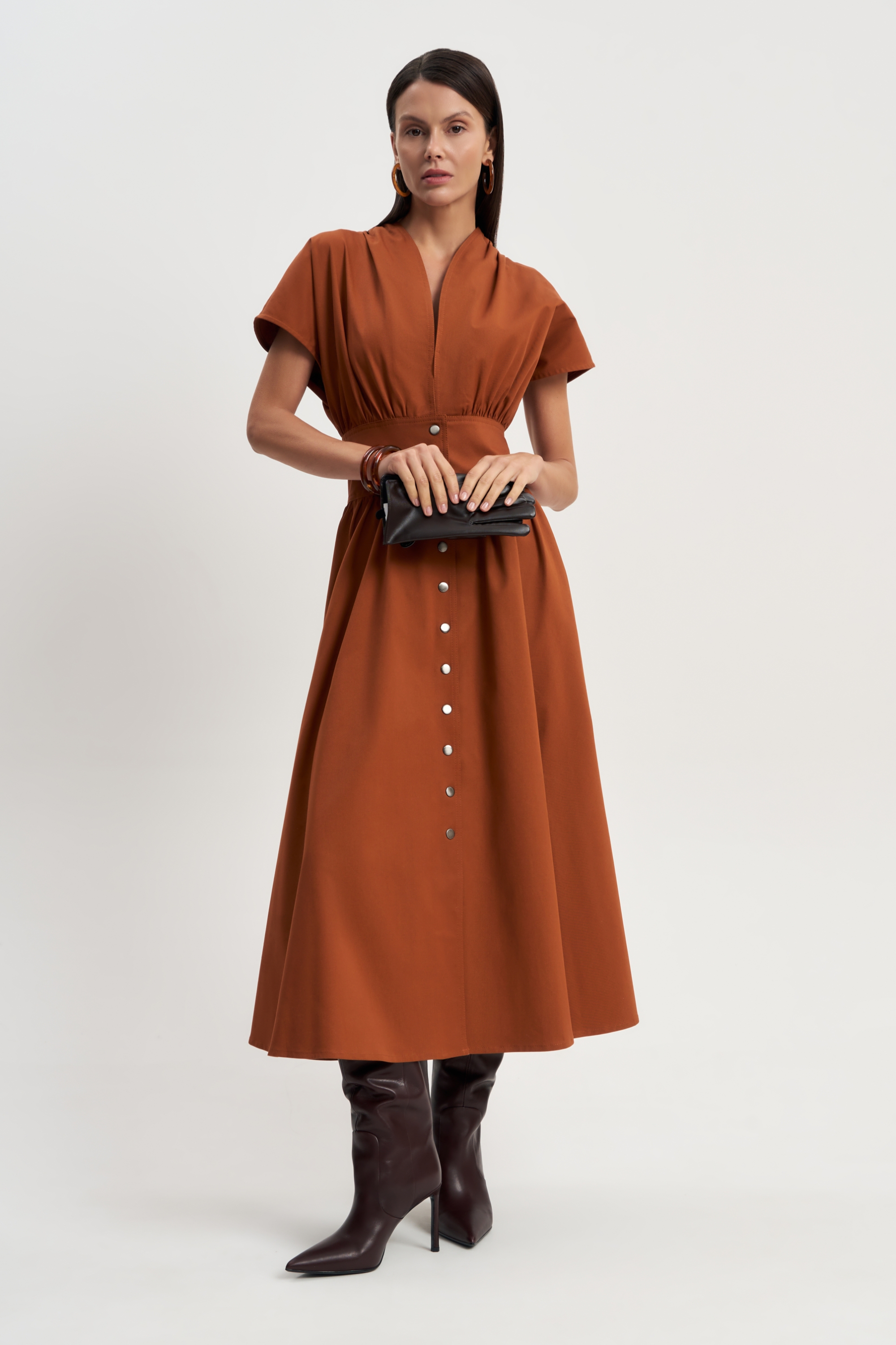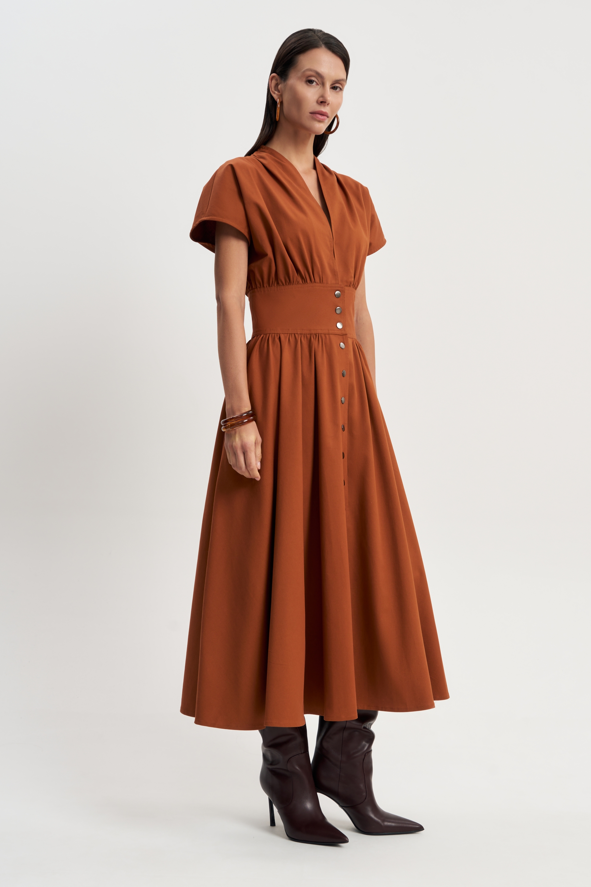 Мягкая, струящаяся ткань и длина по щиколотку делают образ женственным, но не вычурным. Платье не сковывает движения, оставаясь лёгким и свободным в носке. Подойдет как для повседневных так и для вечерних выходов.