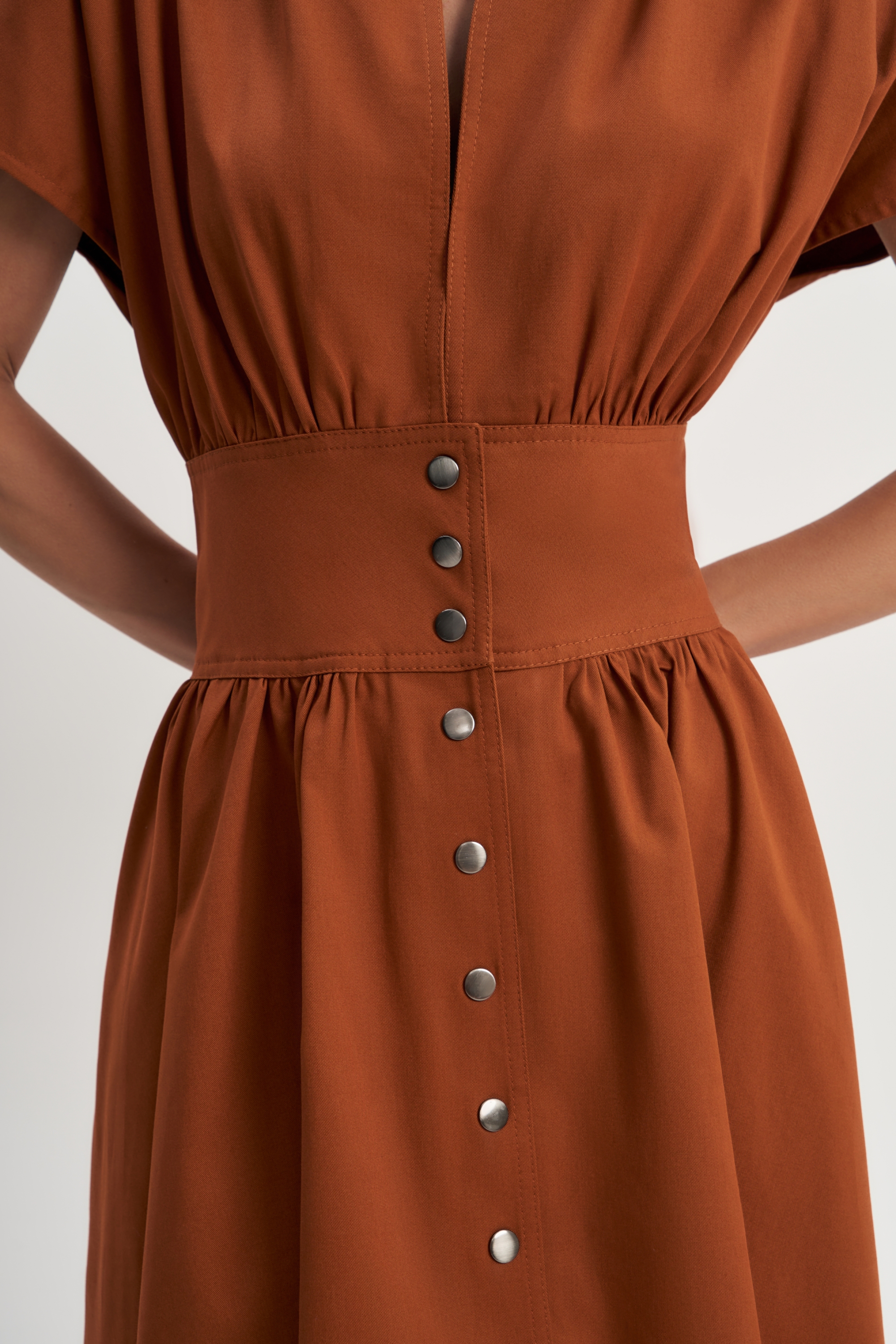 Силуэт с широкими плечами, подчёркнутой талией и лёгкой, плавно расходящейся к низу юбкой формирует классические «песочные часы» — отсылку к легендарному стилю 50-х годов.