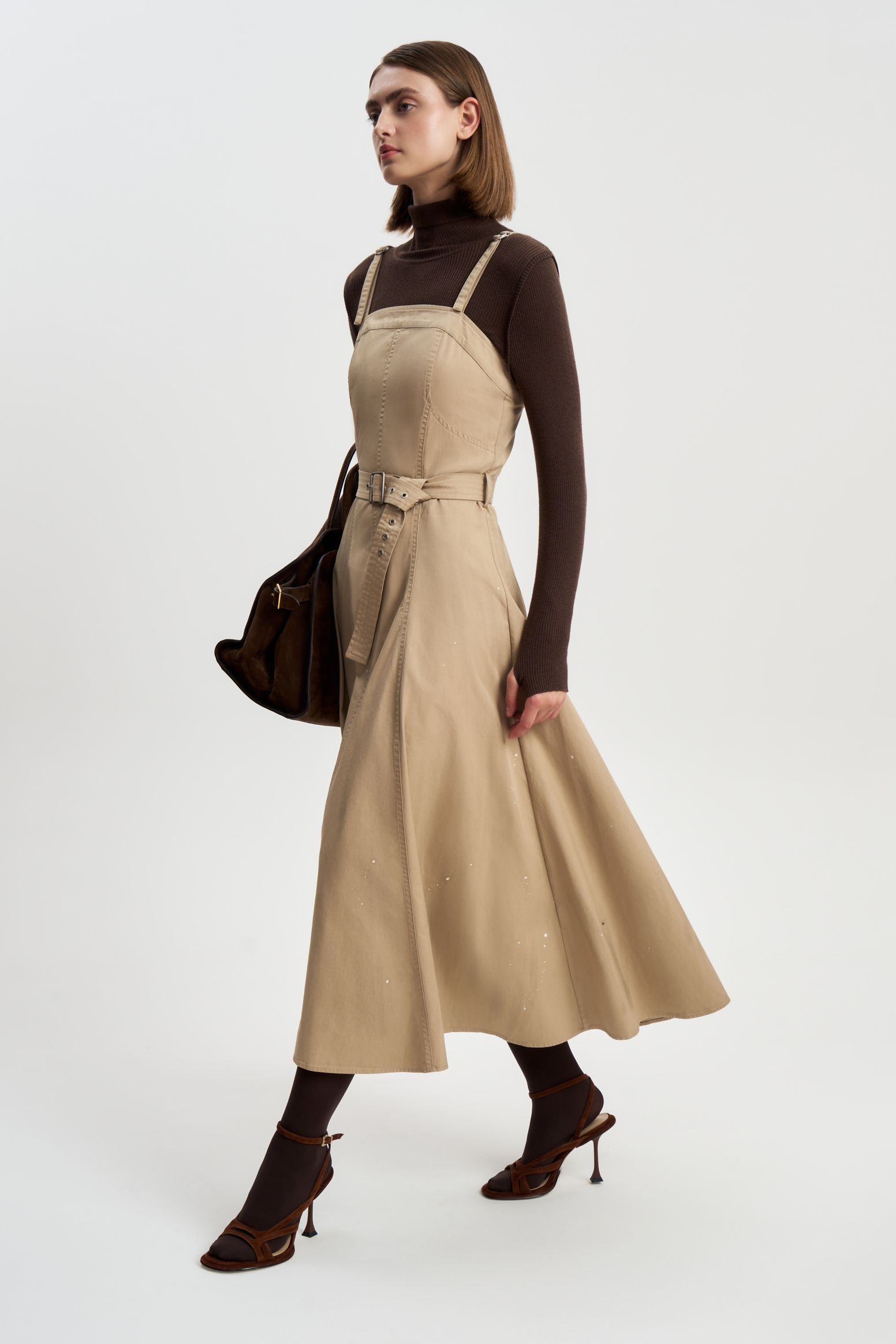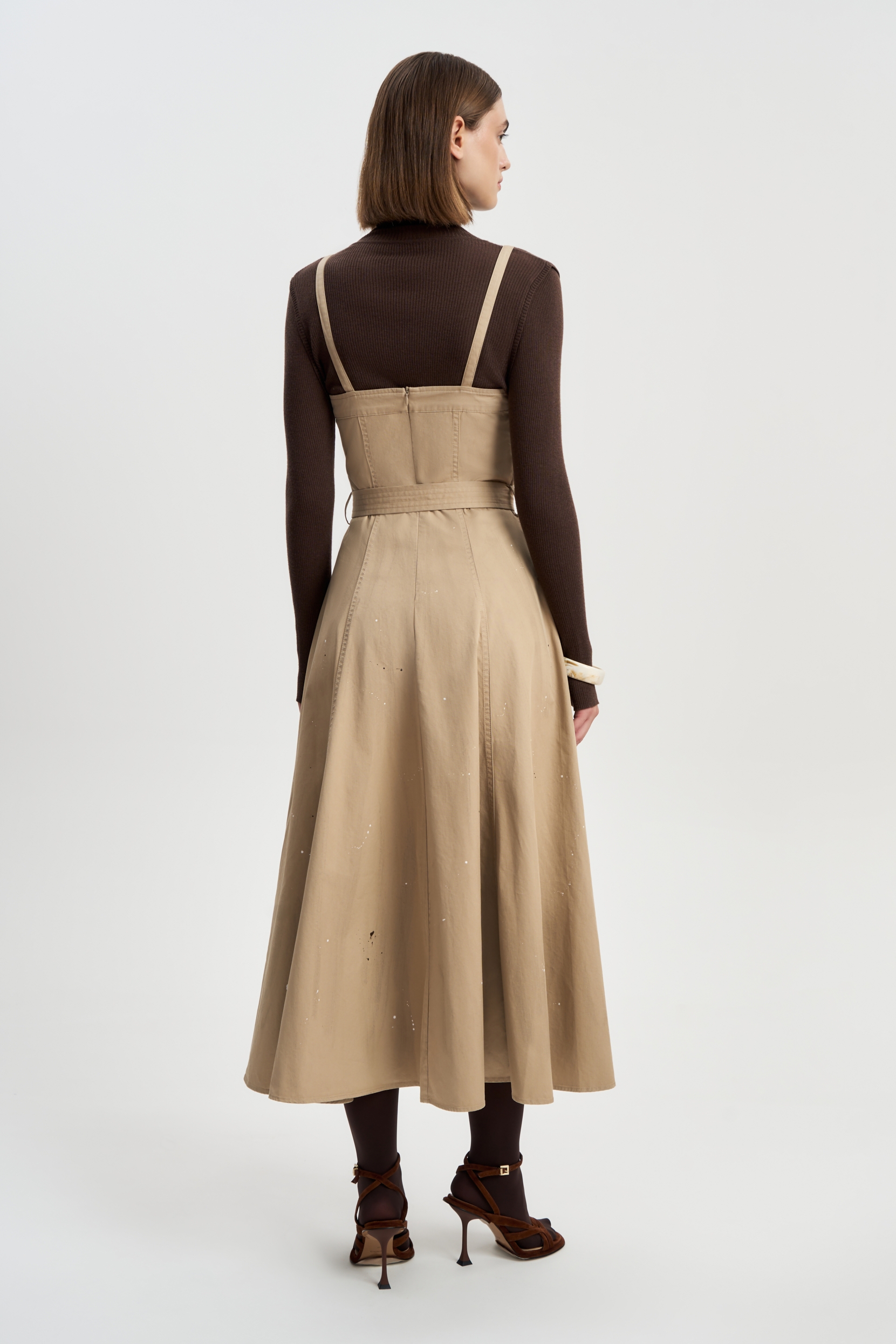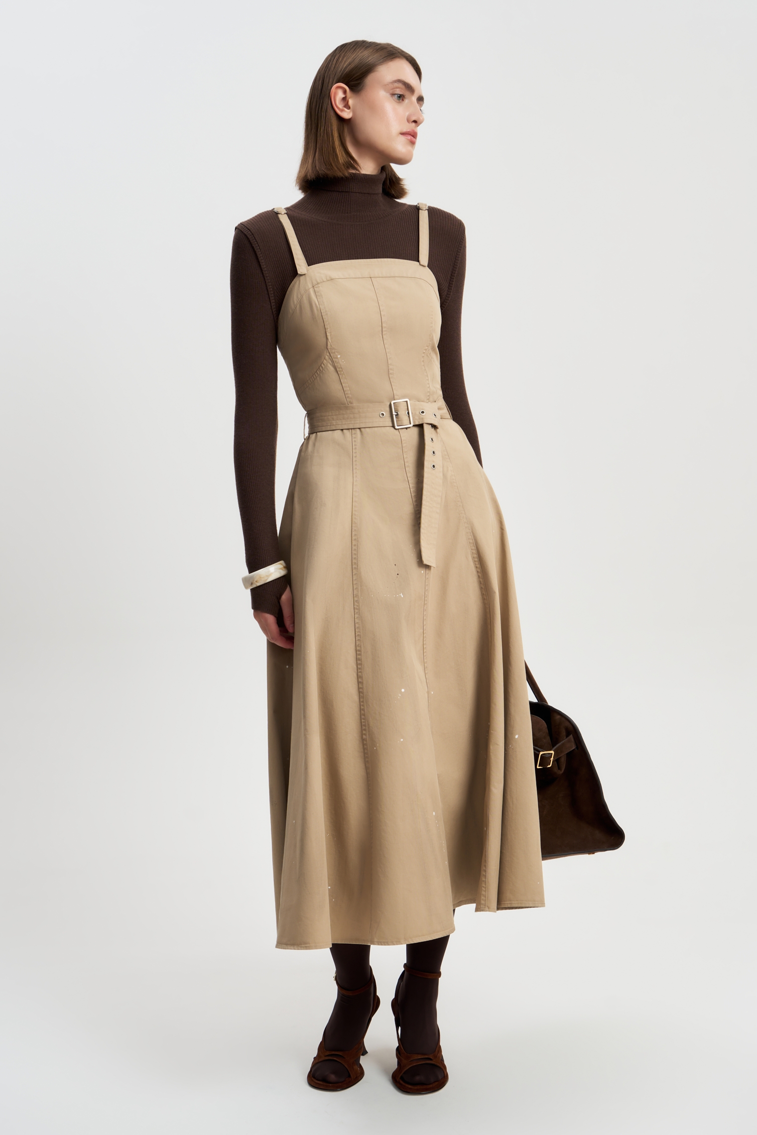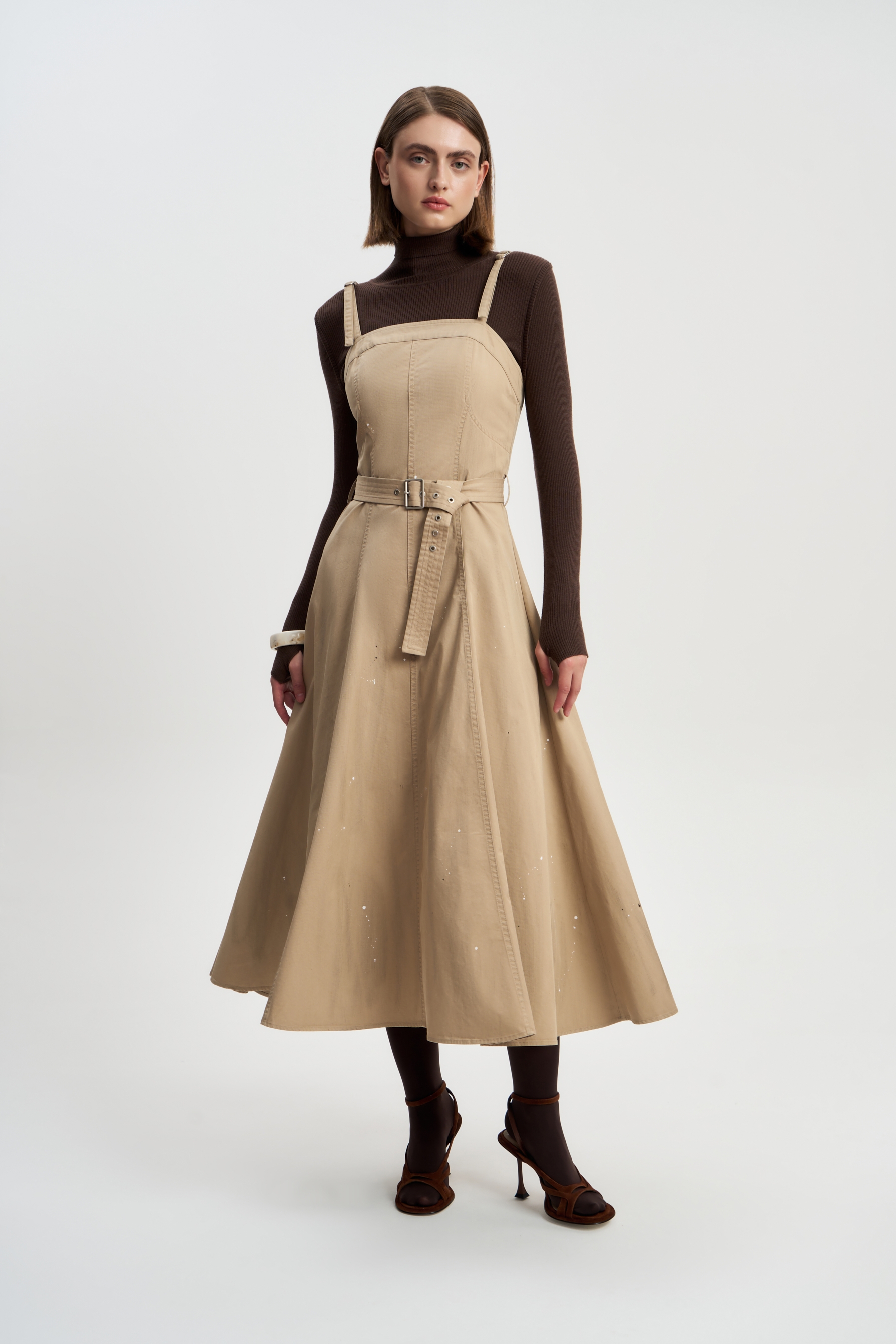 Сарафан Брызги красок сшит из плотного хлопка песочного цвета, на который как будто разлетелись мелкие брызги красок. Облегающий лиф и расклешенная юбка выгодно показывают фигуру. Талия подчеркнута ремешком из такого же хлопка. Сарафан подходит и для города в летний день и для отдыха.
