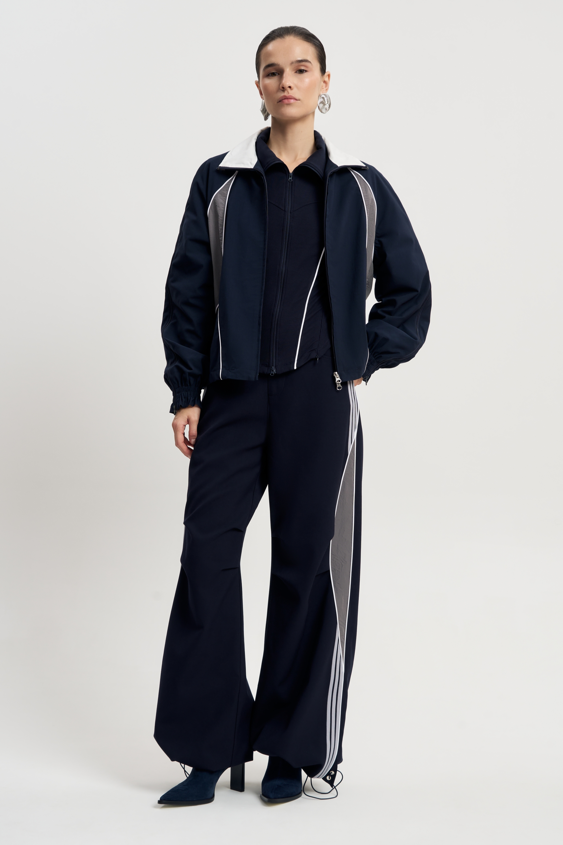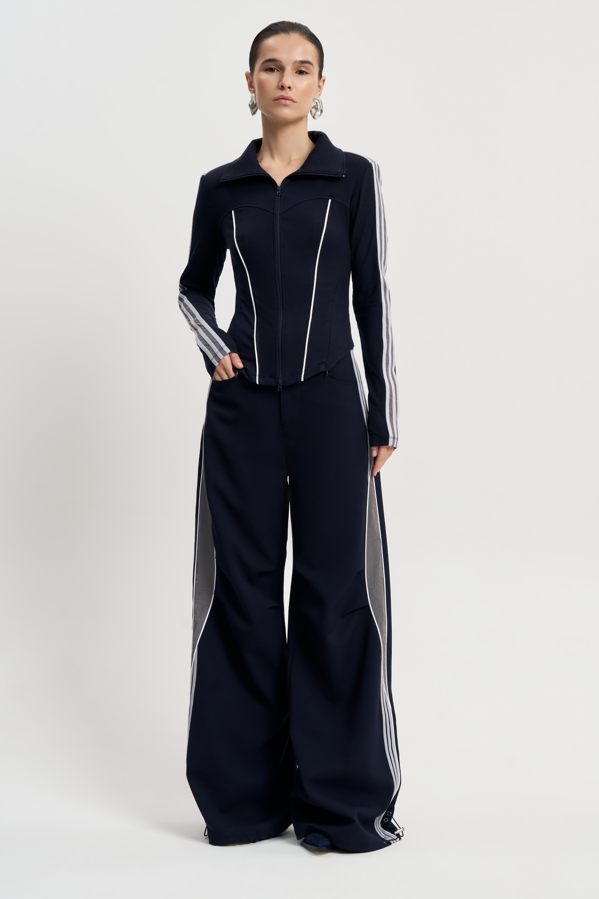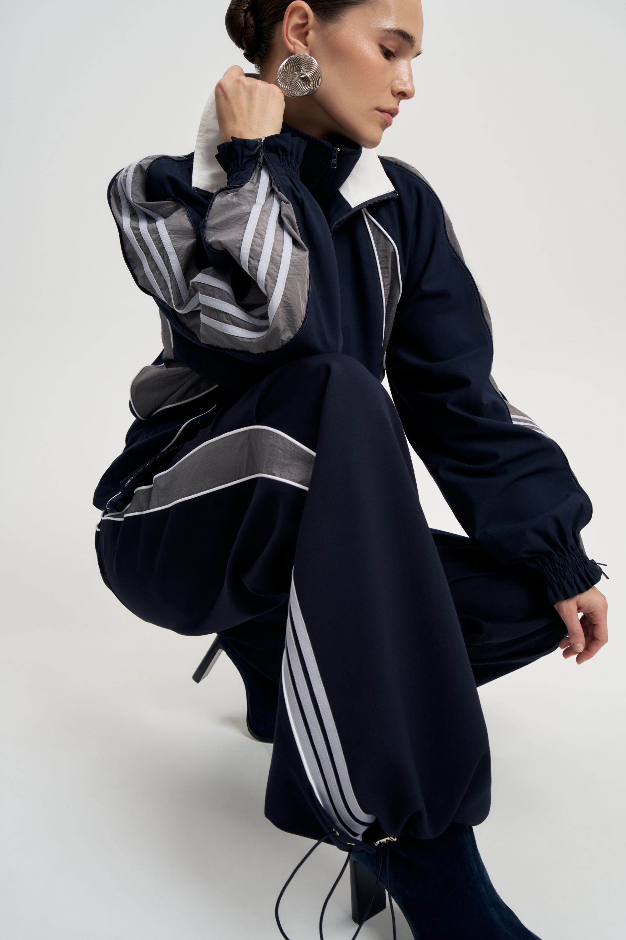 Играя с молниями возможно достигать разнообразия в ваших образах, смещая акцент с дерзкой сексуальности на спокойную практичность. Плотный материал и крой делают костюм идеальным для осенних выходов и прохладной погоды.