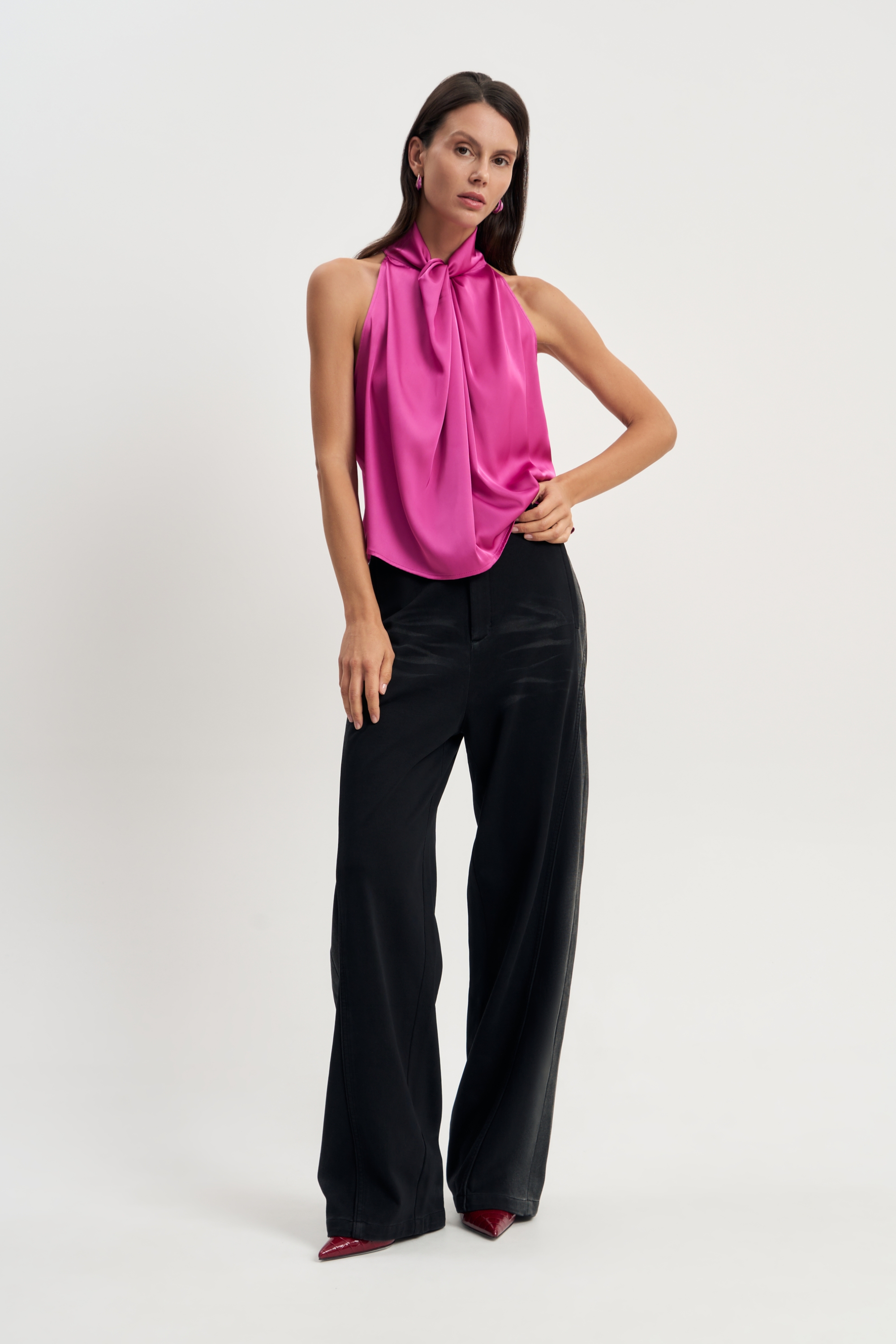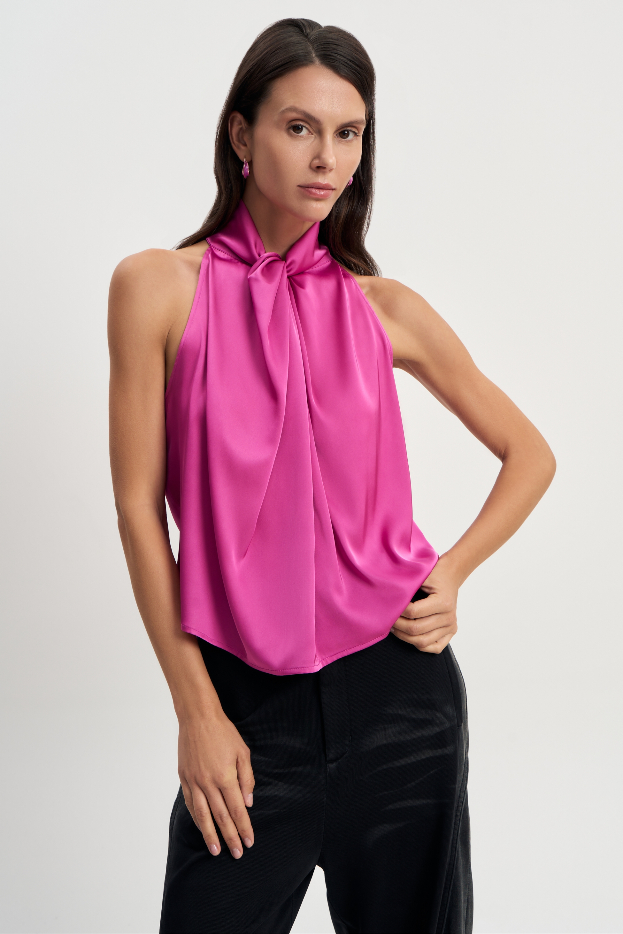 Шелковистый топ Малина мягко прилегает к телу и комфортен в даже в самую жаркую погоду. Горловина стойка украшена изящным узлом. Американская пройма красиво подчеркивает плечи. Прекрасно сочетается с юбкой Элегант Лиловой.