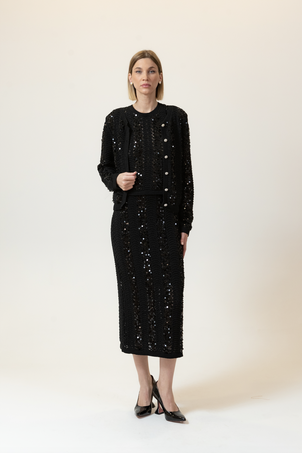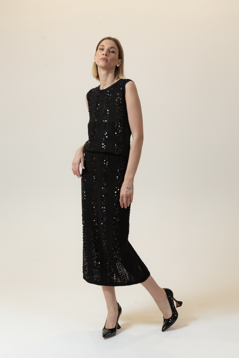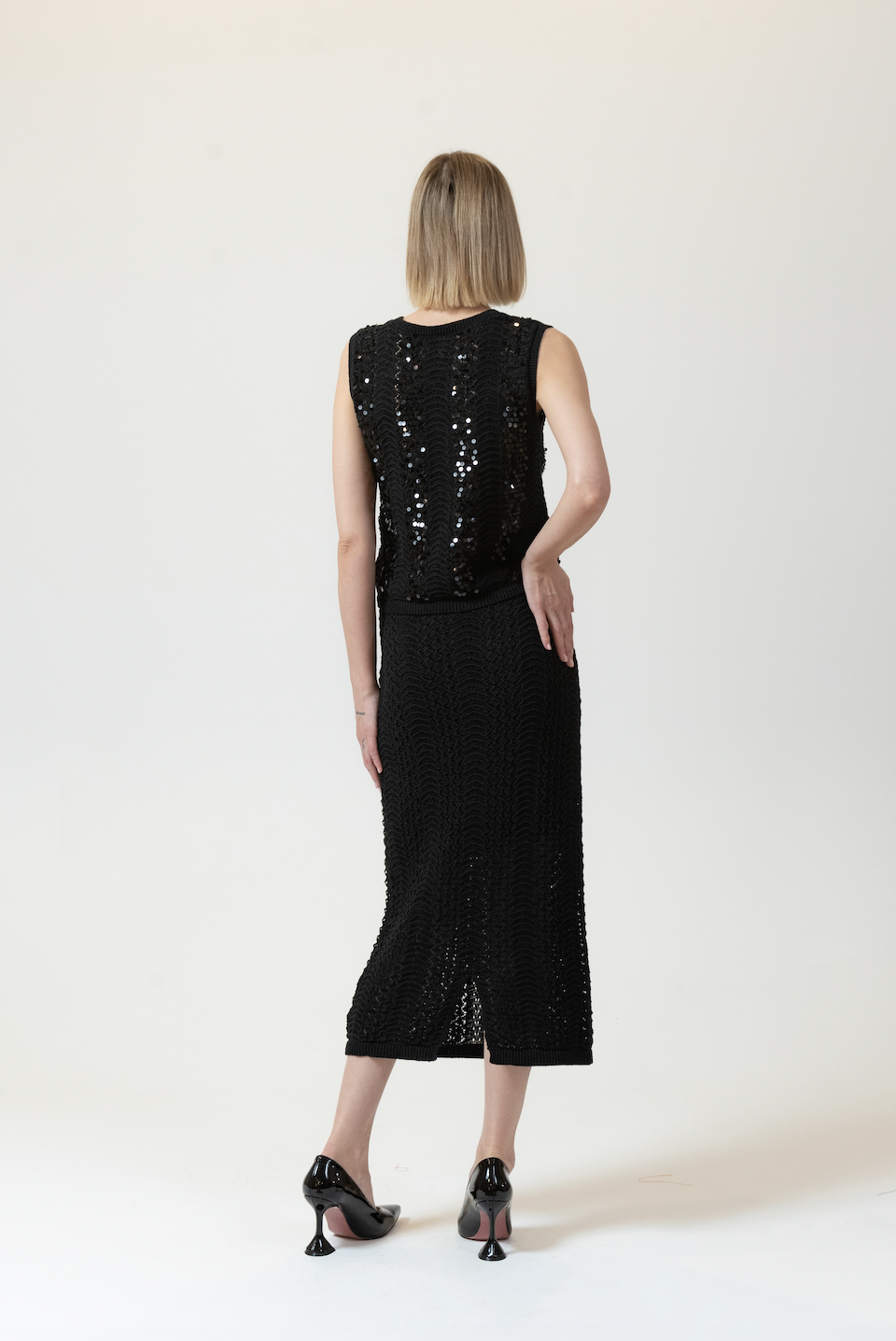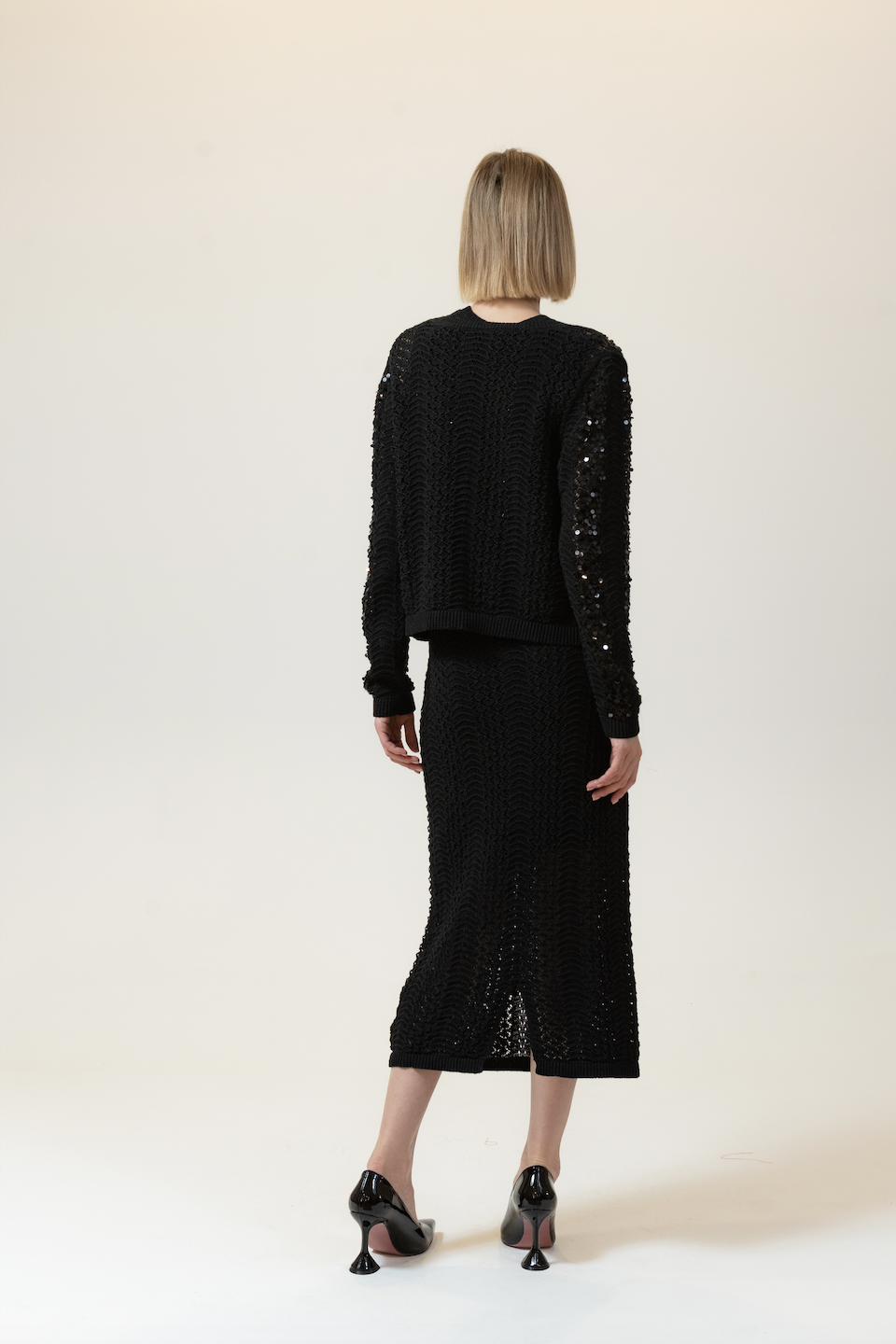 Эта юбка из гипюра — воплощение элегантности и утончённости. Верхний слой из прозрачного материала струится до щиколоток, создавая ощущение воздушности. Под ним — мягкая подкладка из смеси льна и тенсела.