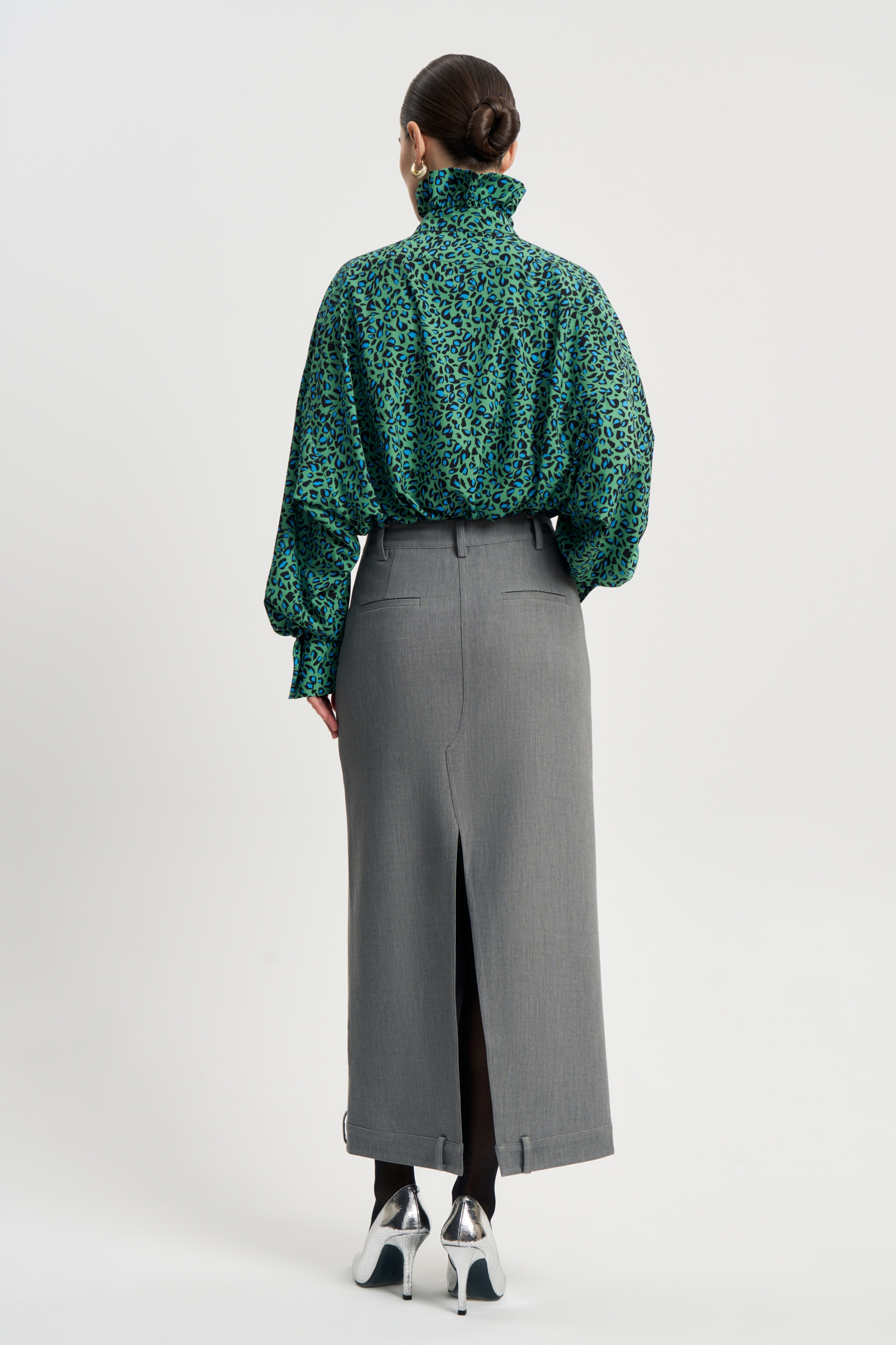 Подол юбки выполнен в стиле брючного пояса. Юбка идеально сочетается как с лаконичными топами, так и с объемными блузами оверсайз, современными куртками и классическими жакетами.