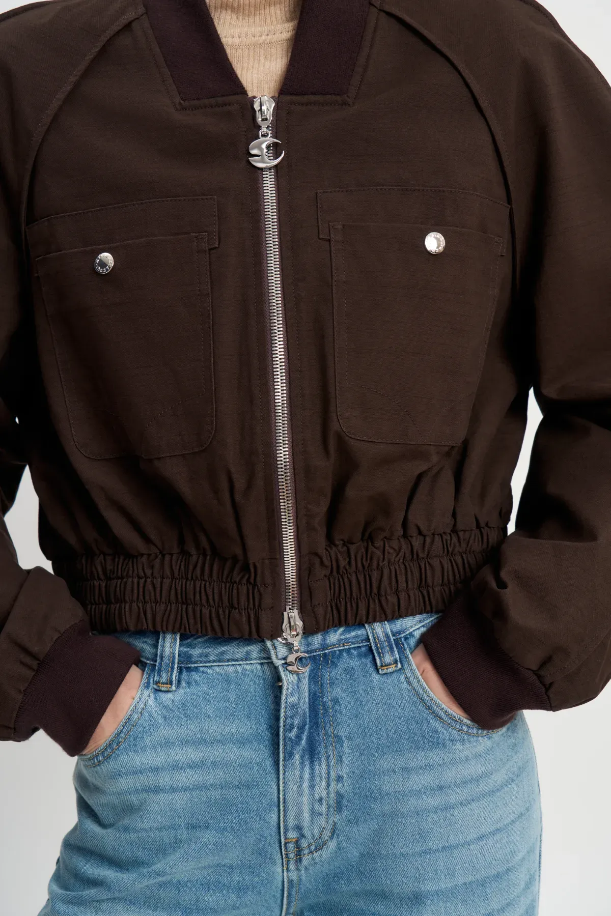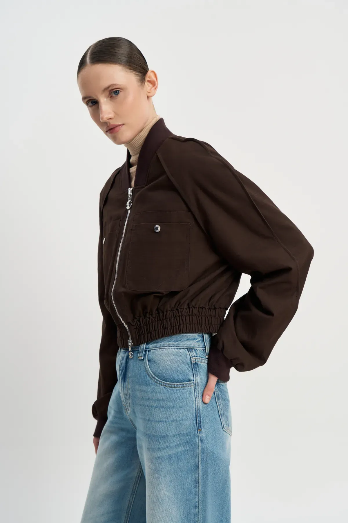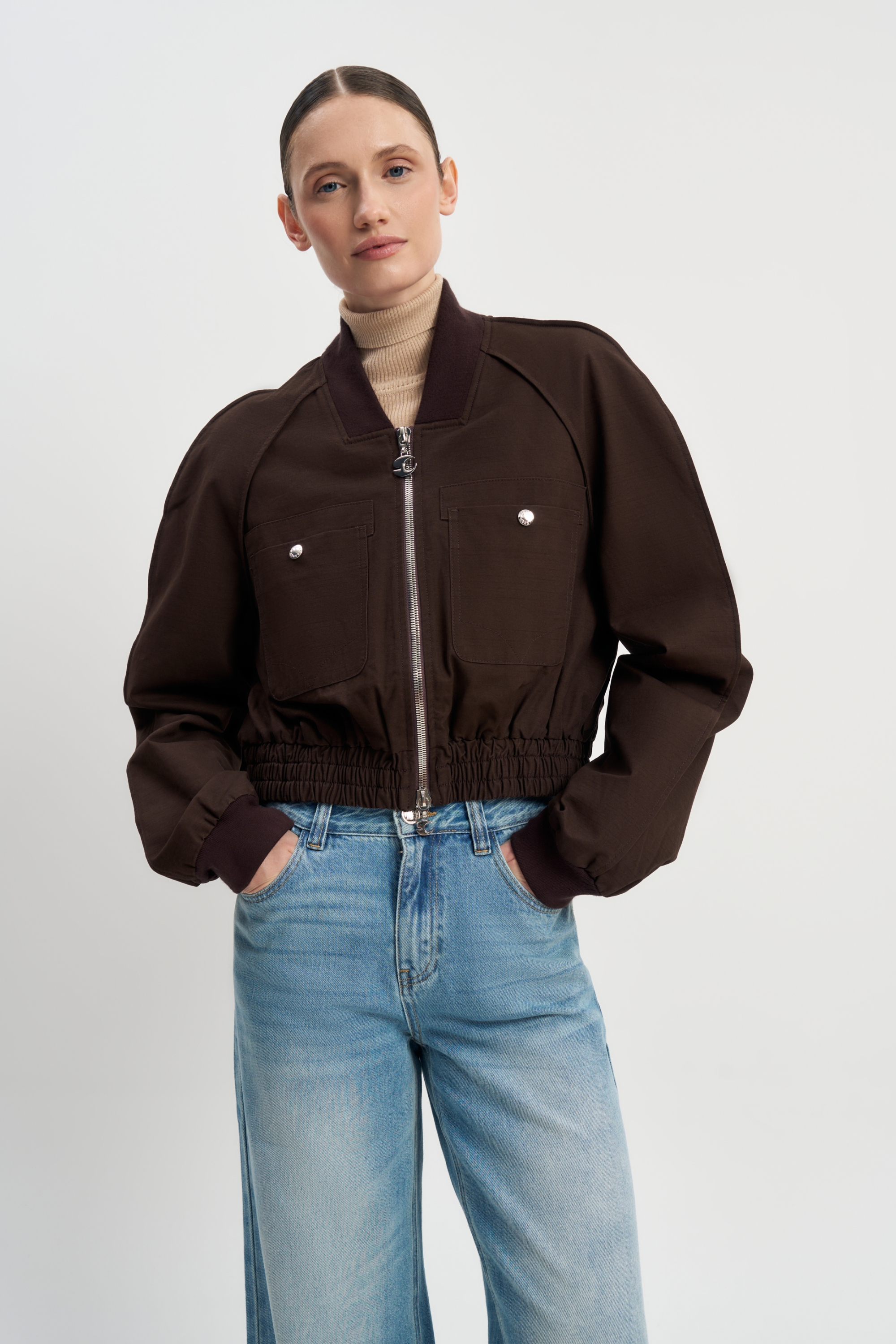 Лаконичная, но с характером — куртка «Фундук» сочетает в себе функциональность и стиль. Укороченная по линии талии, с подчёркнуто широкими плечами и свободной посадкой в груди, она сужается к талии, создавая выразительный силуэт.