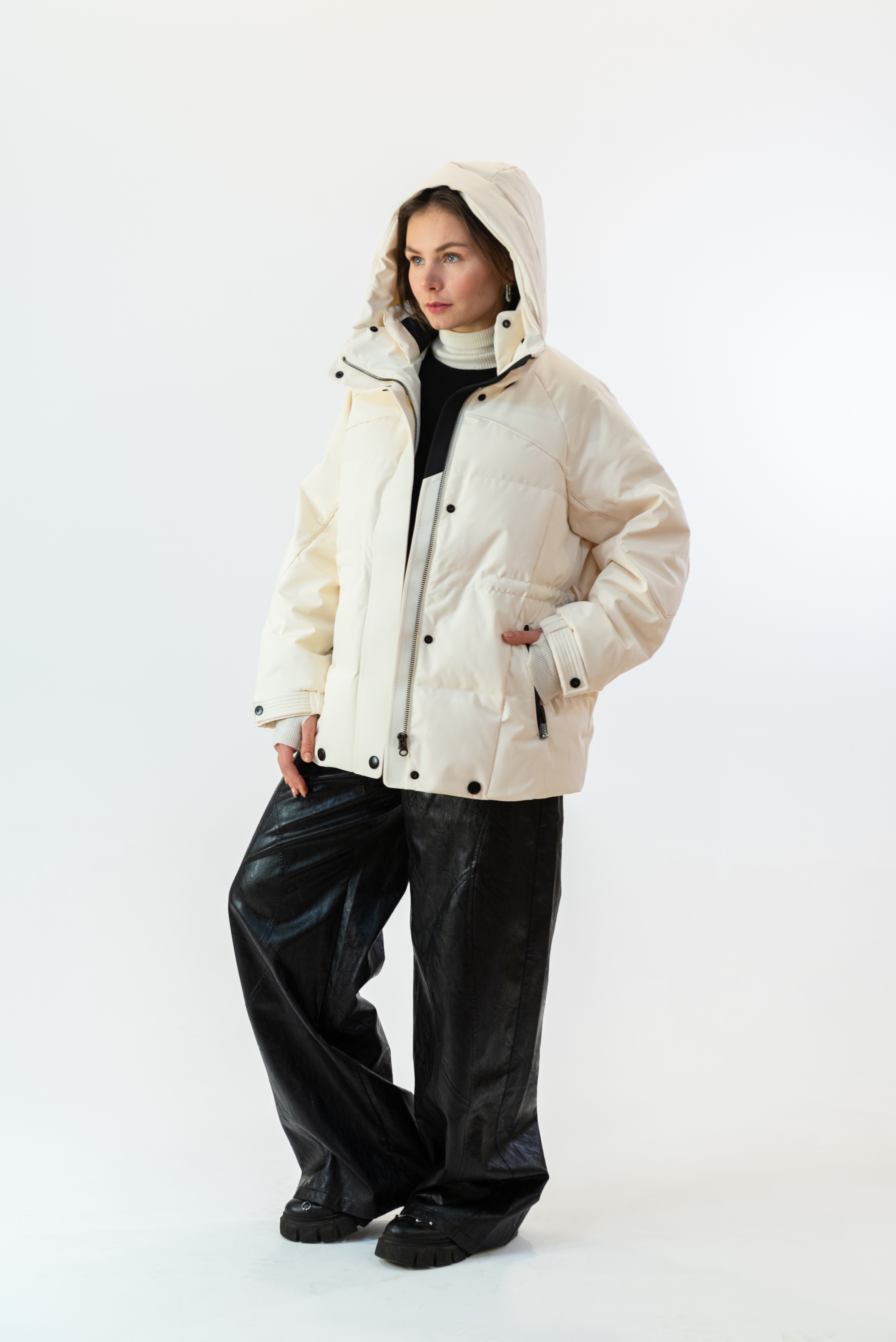 Белый пуховик “Умка” — комфортный и очень теплый, идеальный для носки в холодную зиму. Наполнение на утиным пуху. Длина до середины бедра.