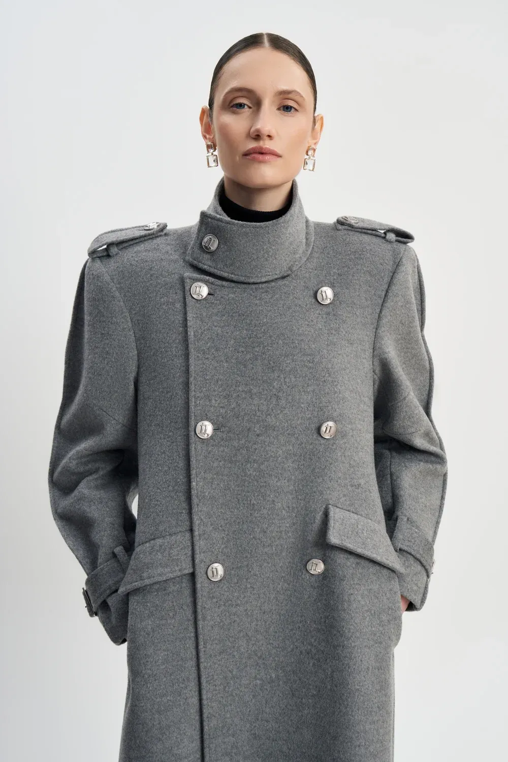 Пальто "Шинель" из натуральной шерсти - теплое и комфортное в холодное время года. Благодаря прямому крою это пальто строгое, в то же время элегантное, с намеком на винтаж: двубортные пуговицы и декор на плечах отсылают к стилю 20го века.
